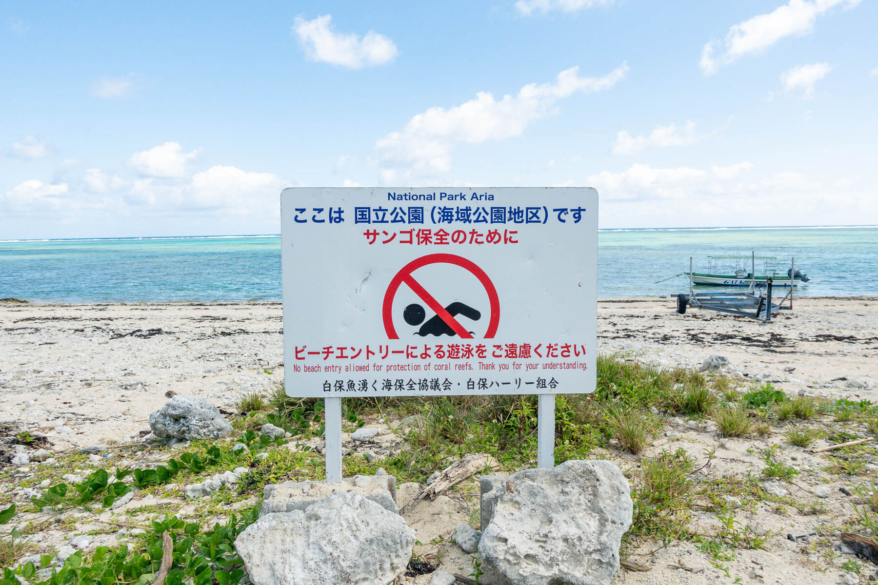 国立公園(海域公園地区)なので、サンゴ保全のためにビーチエントリーによる遊泳は禁止とのこと。眺めるのは大丈夫みたい!