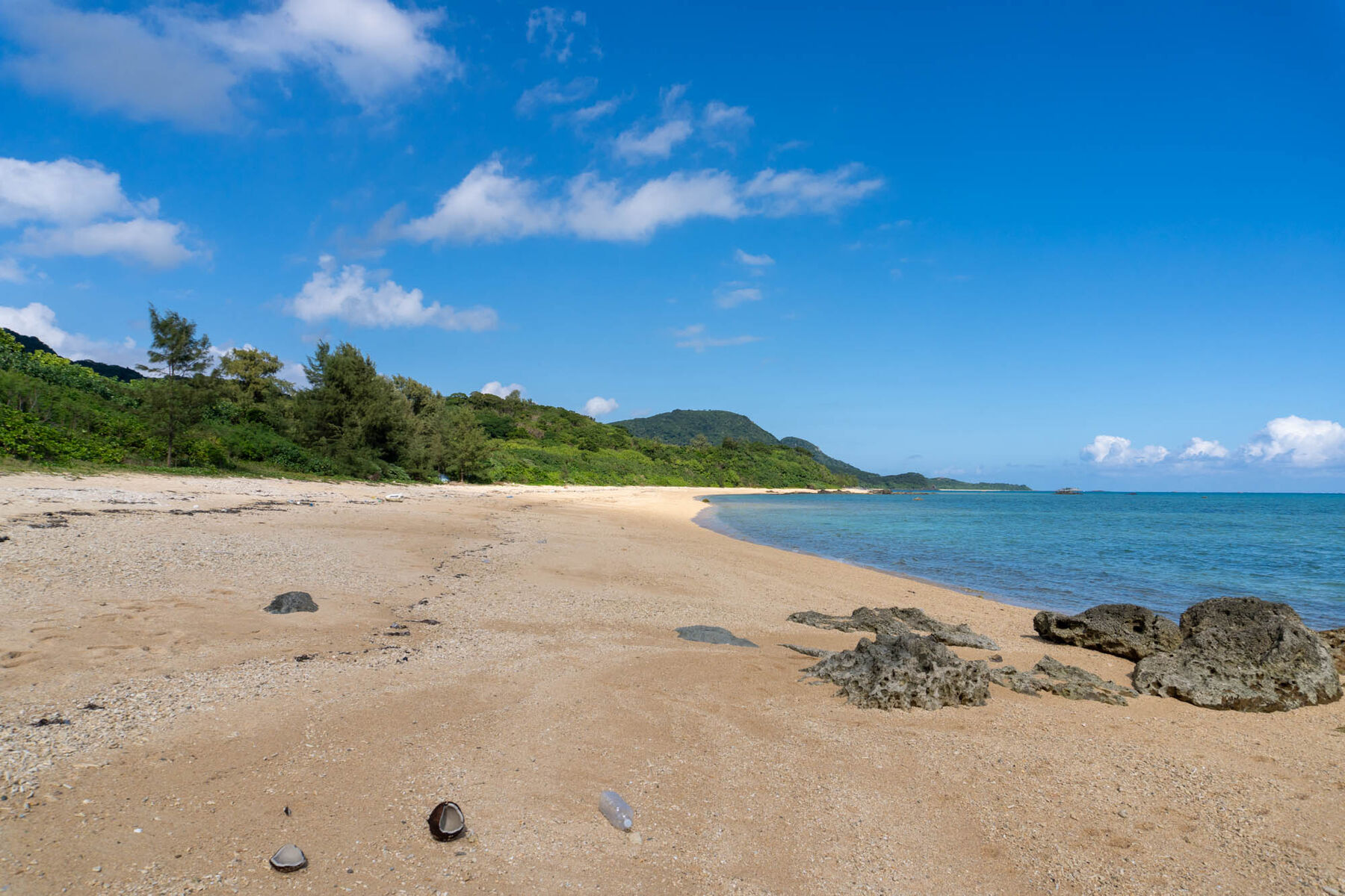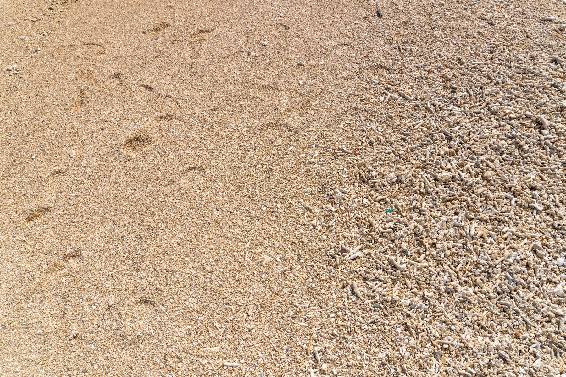 砂はやや粗め!珊瑚のカケラも多いので、裸足はおすすめしないかも!