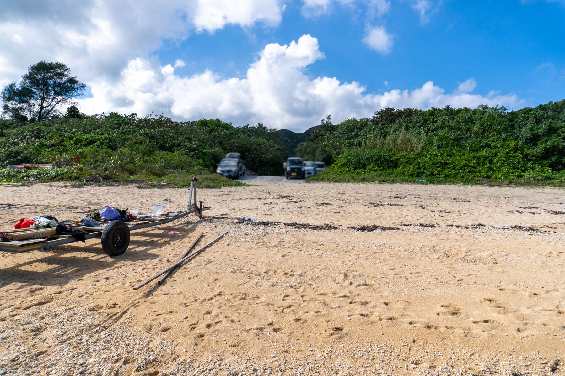 こんな感じでビーチのギリギリまで車で来れちゃうので、木々が生い茂る緑のトンネル(笑)を抜ける心配もなく、小さなお子様と一緒でもご年配の方でも、どんな方でもアクセスしやすそう!