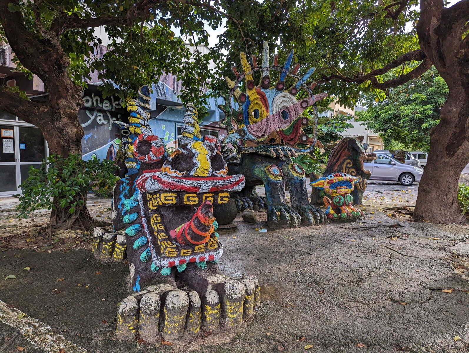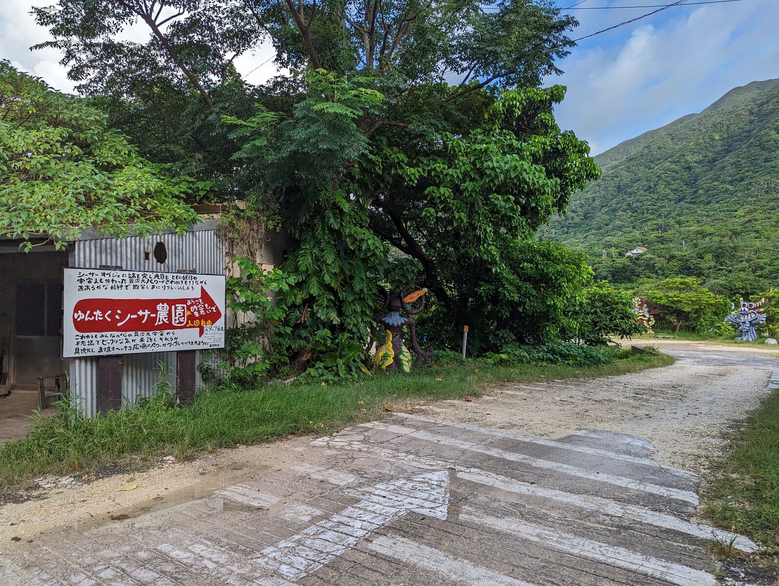 こちらは米子焼のカラフルな巨大なシーサーや個性豊かなオブジェなどが展示されている農園で、まだ未完成なんだとか!