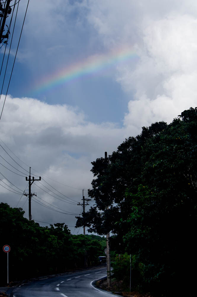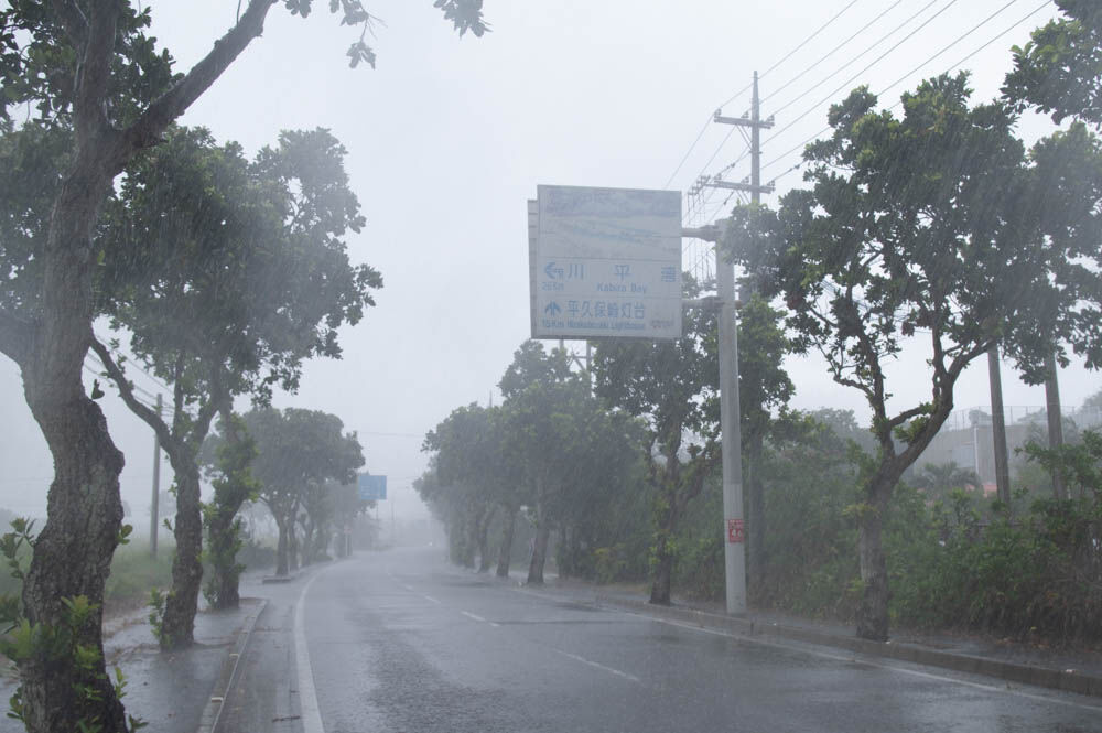大雨に打たれながら次の目的地、石垣島最北端「平久保崎灯台」へ向かいます。