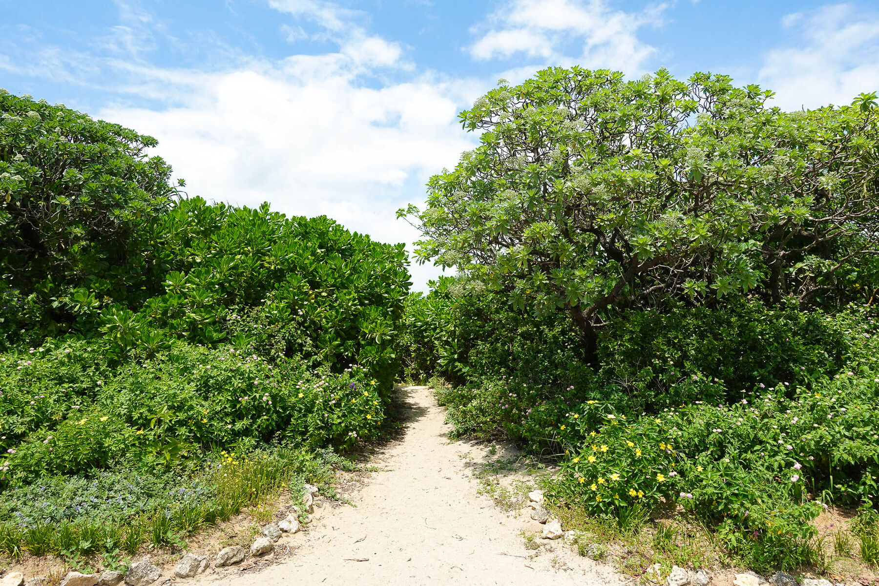 入り口は草木に囲まれていて、細道を抜けるとビーチがあります。