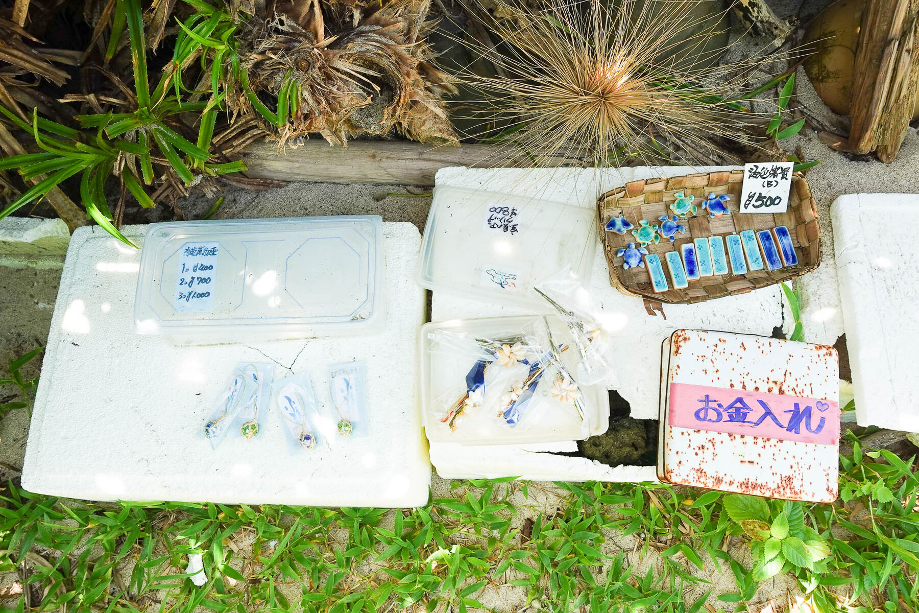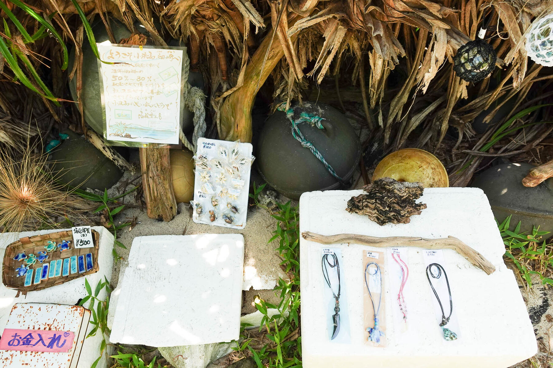 細道の途中にアクセサリーの無人販売が!