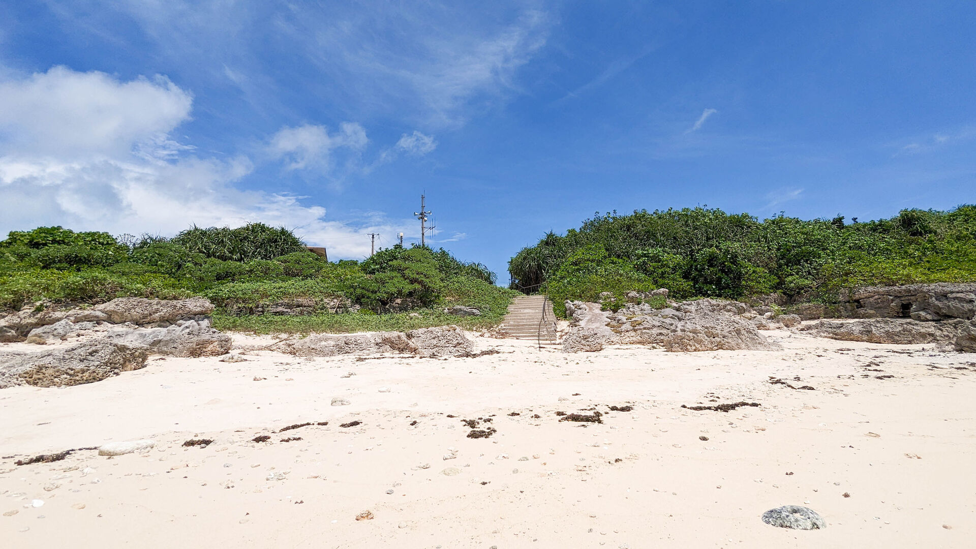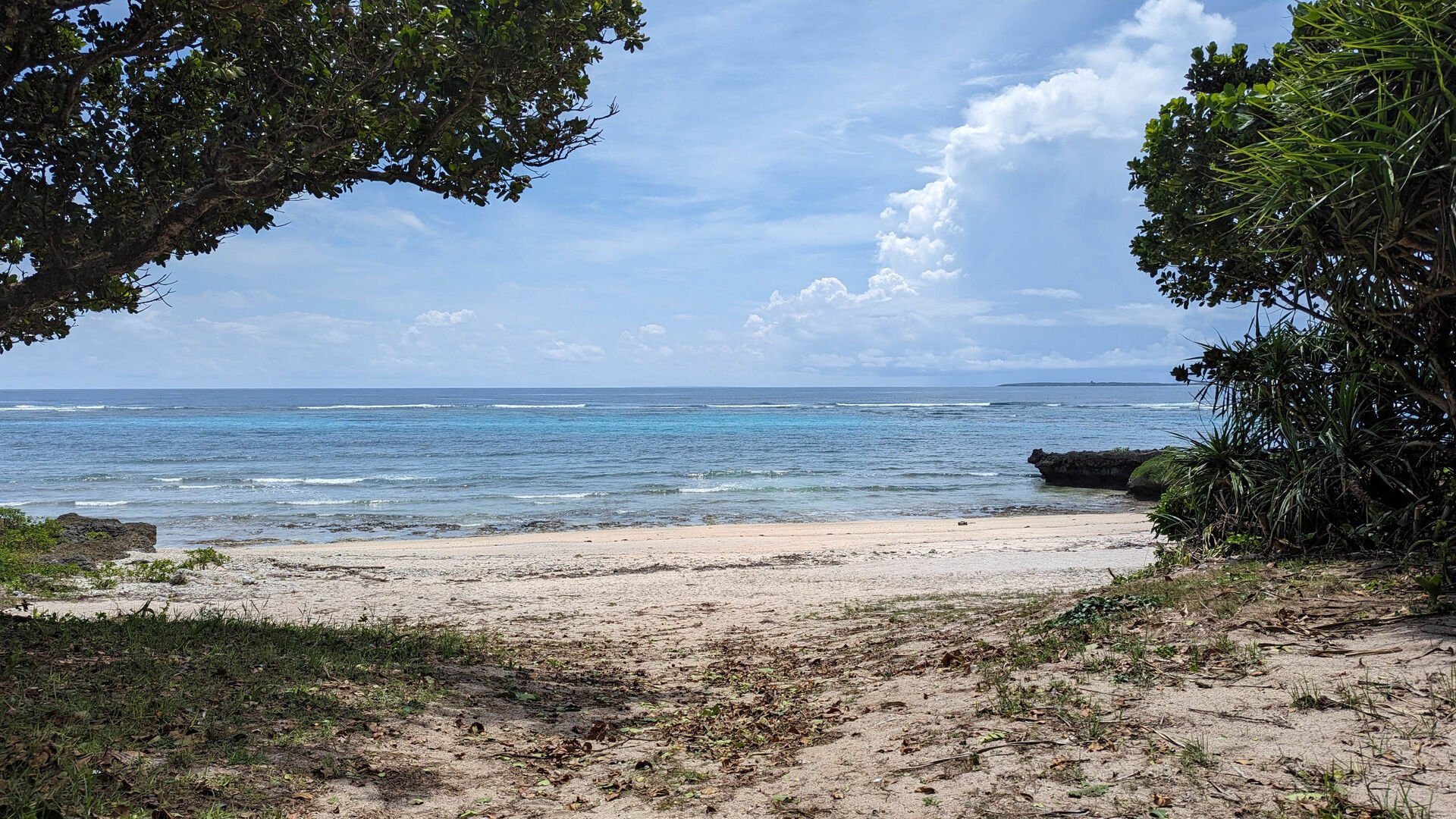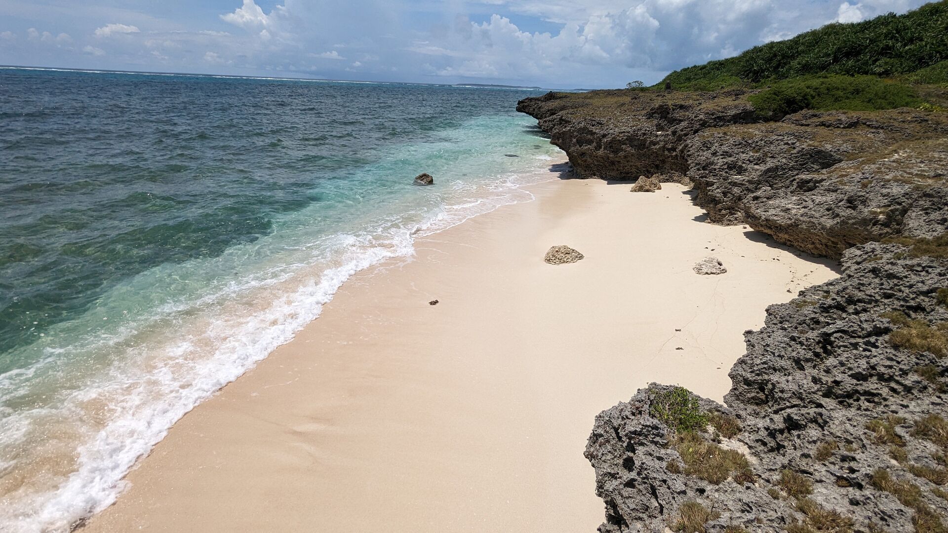 約2kmにもわたり白い浜が続く「西の浜」が。めっちゃ綺麗な砂浜〜!ってわけではないのですが、4-9月にはウミガメが産卵に訪れる場所なんだとか。