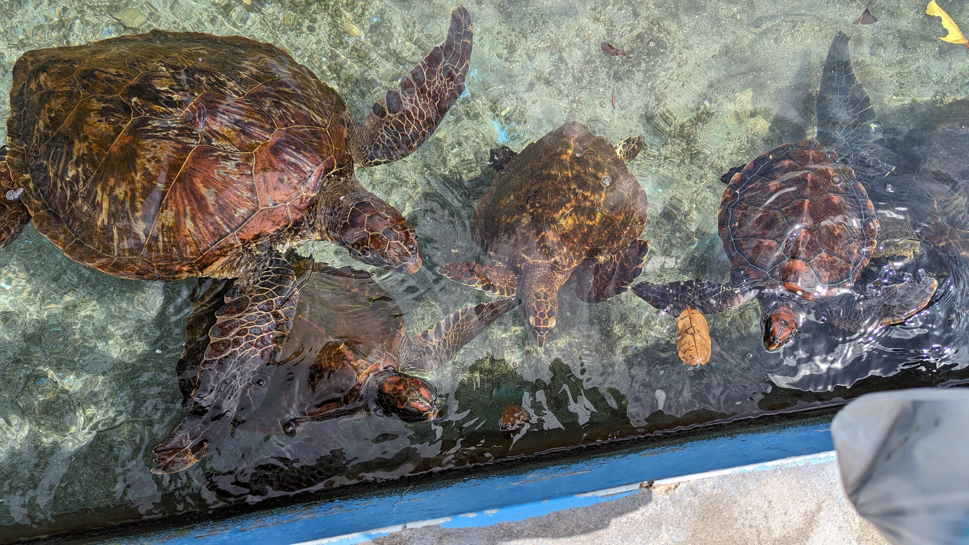 こちらの施設ではウミガメやサメに餌をやることができます。