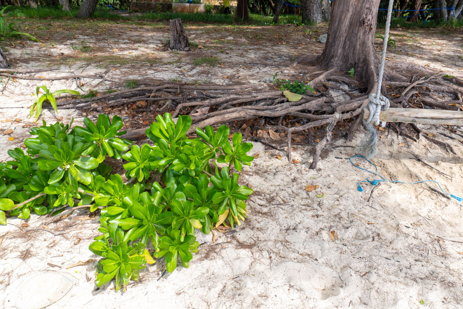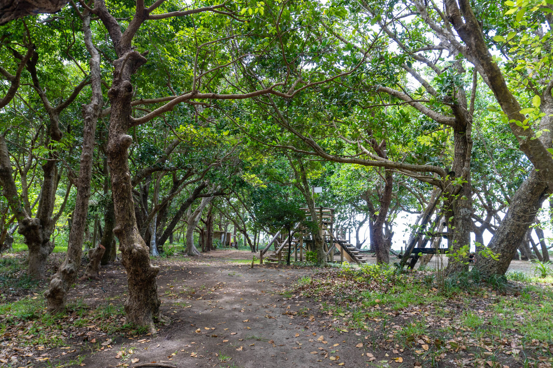 ビーチの手前には木陰やアスレチック、ブランコなどがあるので、
