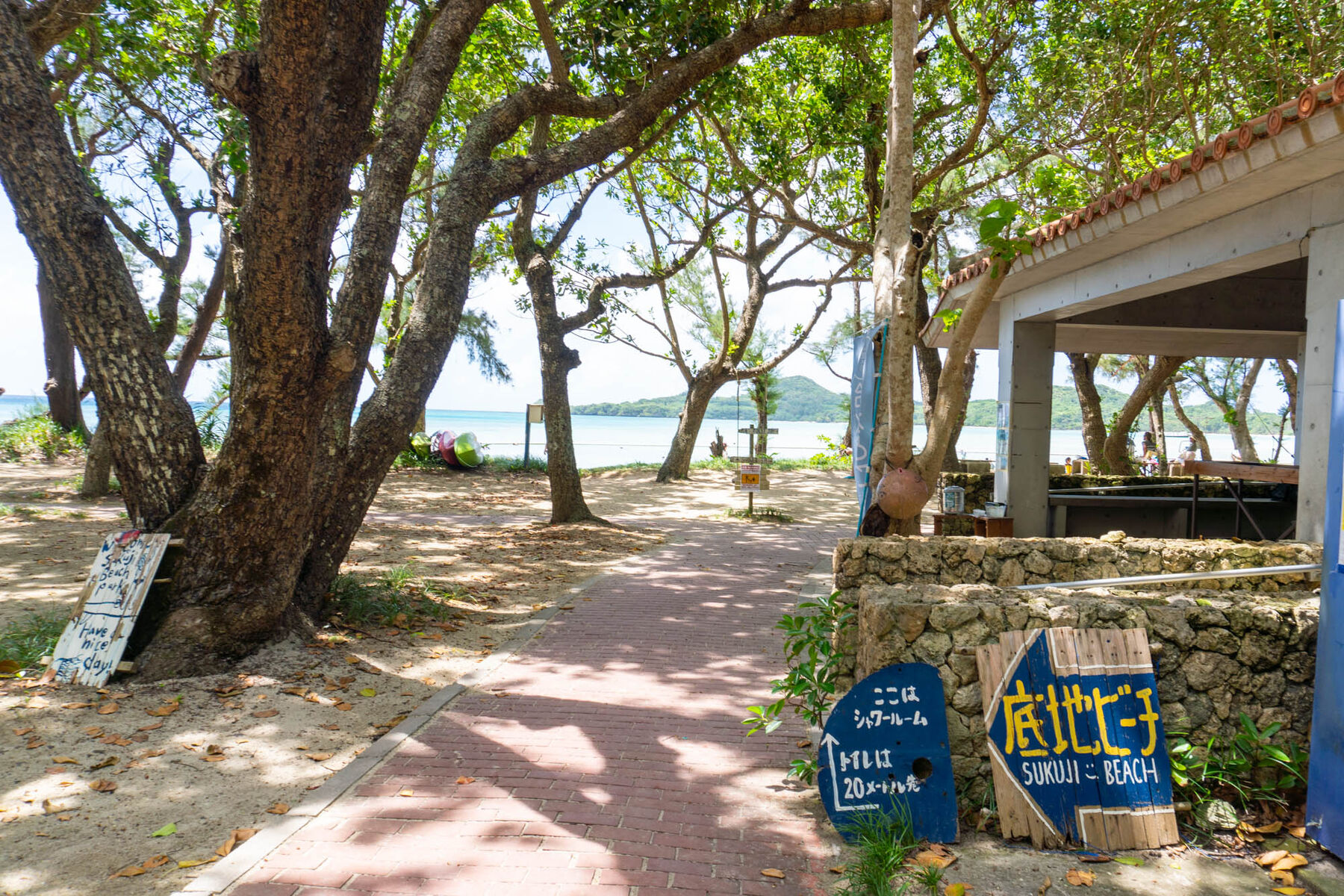 トイレ、シャワーもあるので、長時間海遊びをしたい人にもおすすめのビーチ。