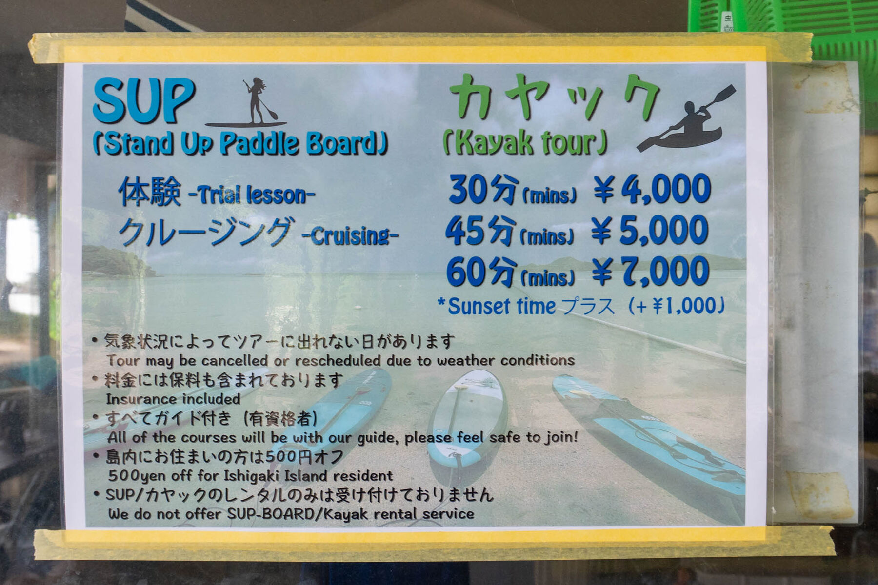 アクティビティはSUP、カヤックができるみたいです。