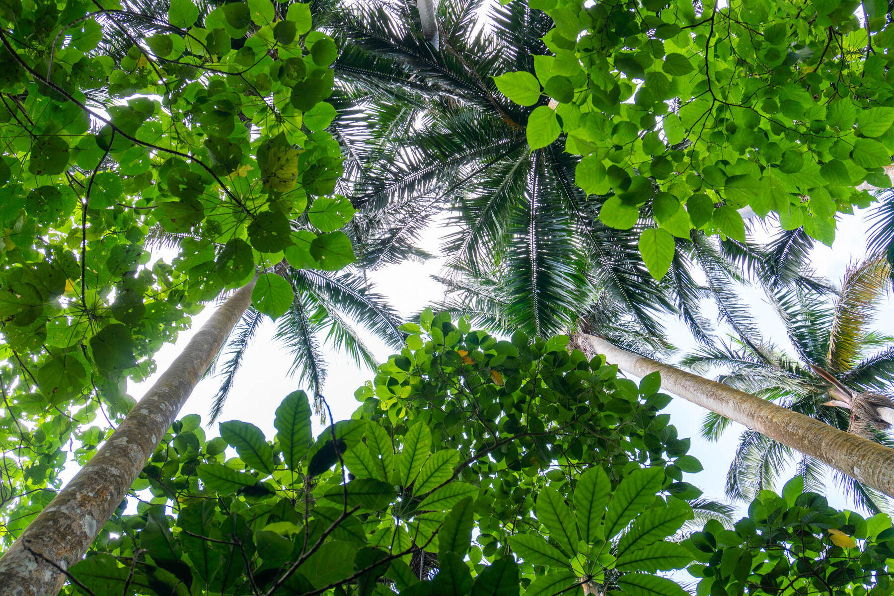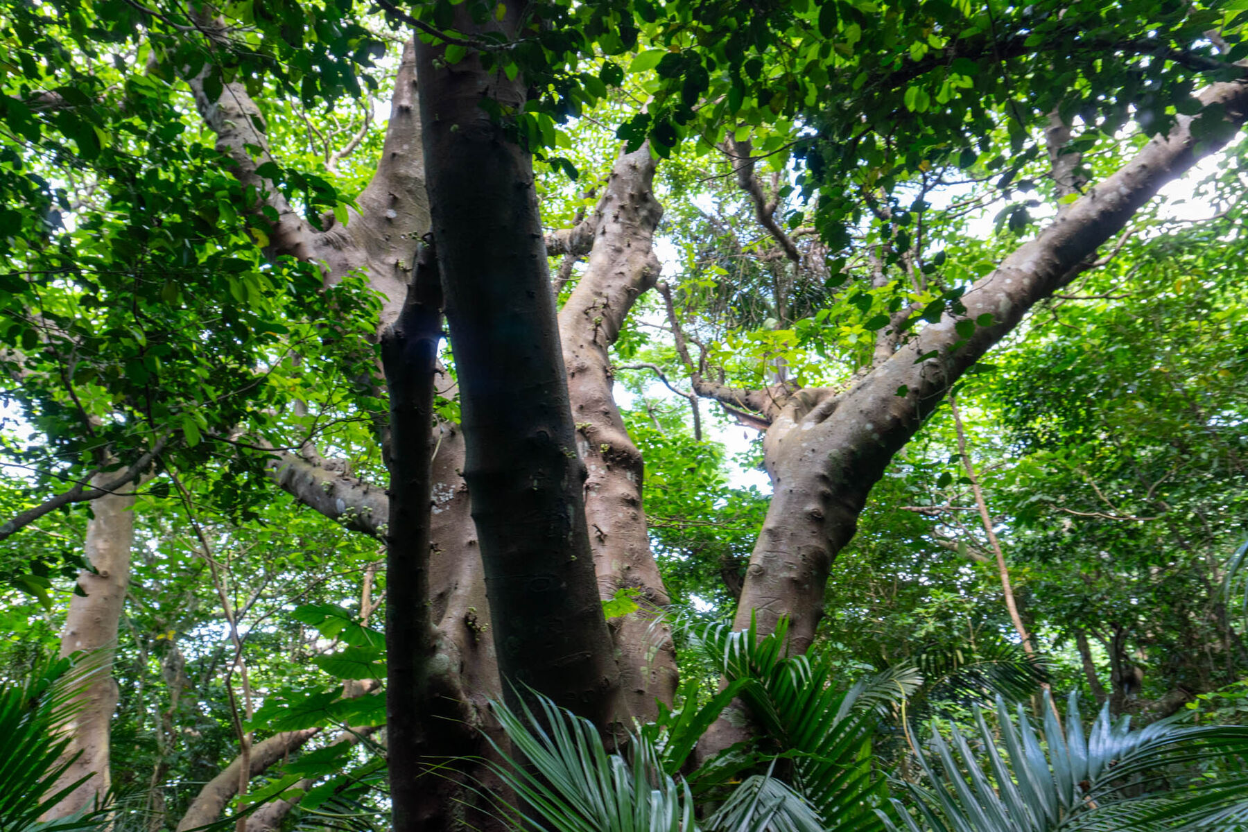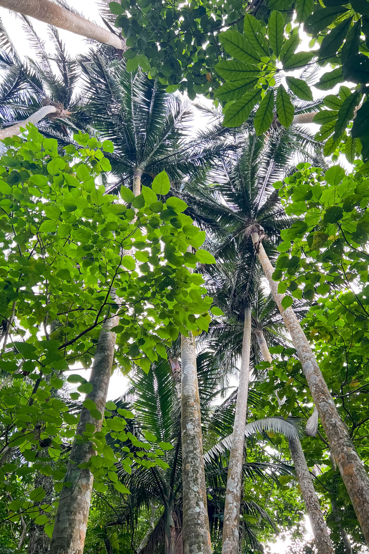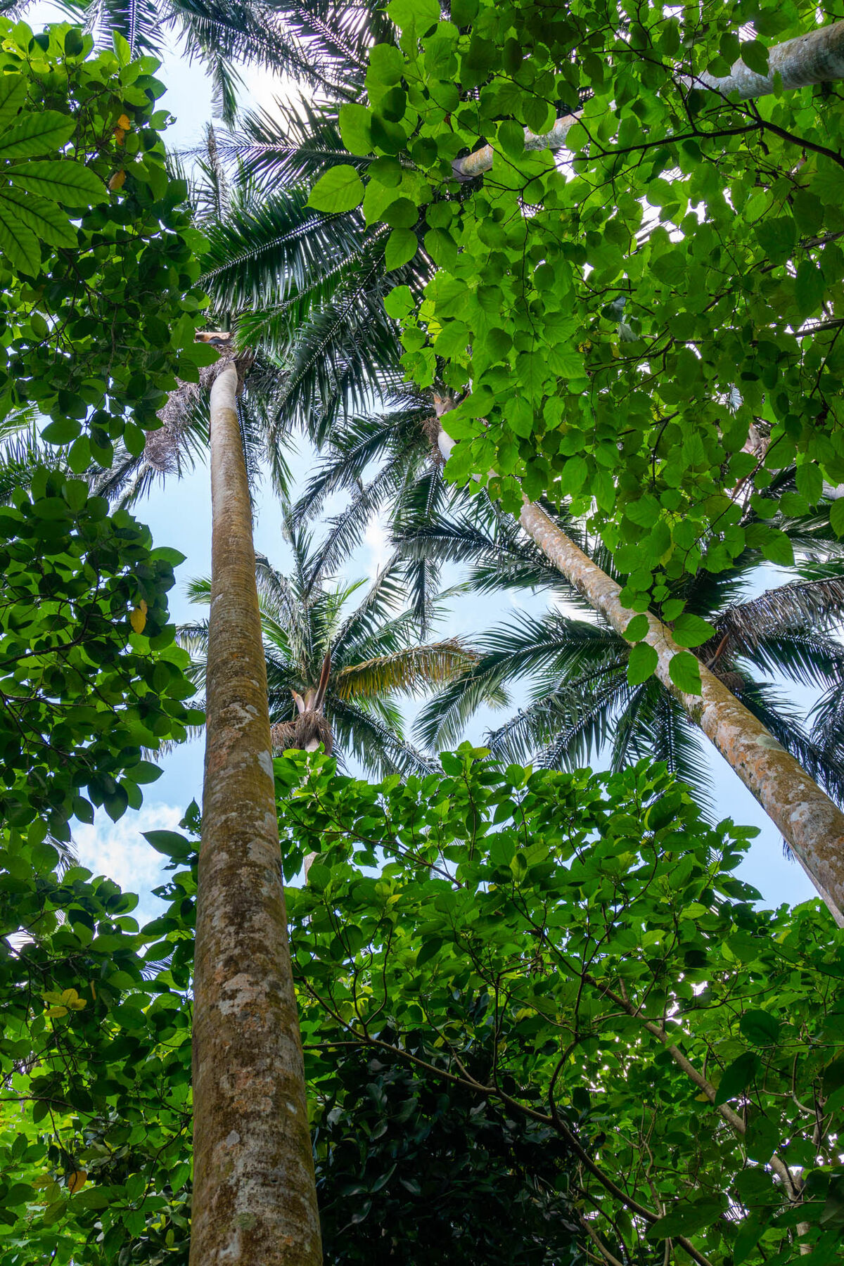たしかにどのヤシもまっすぐに伸びていて、てっぺんの葉の部分までは枝が1本もないですね…!なんとも不思議。