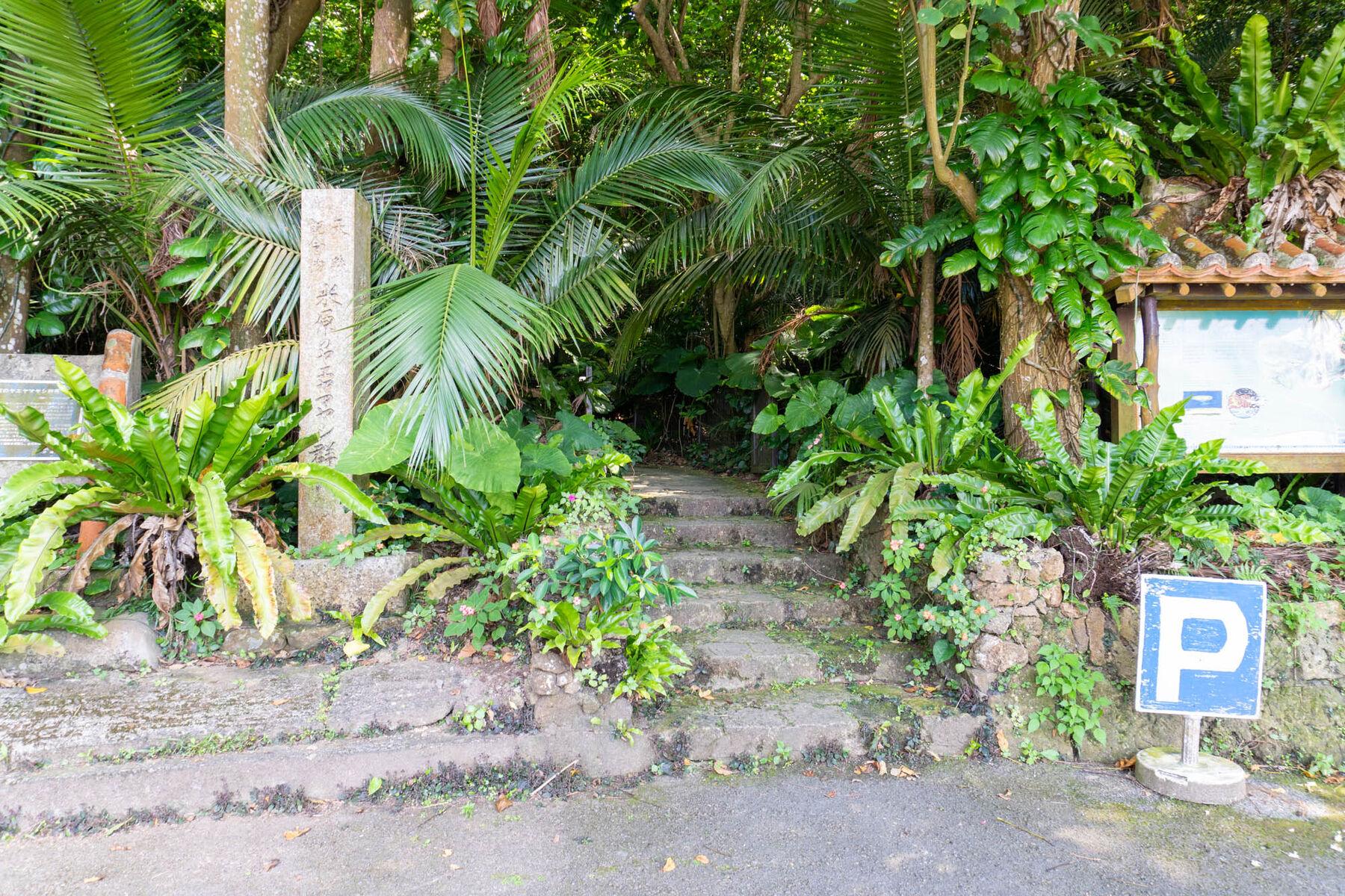 ヤエヤマヤシ群落の入口はこちら。それでは行ってみましょう〜〜〜!
