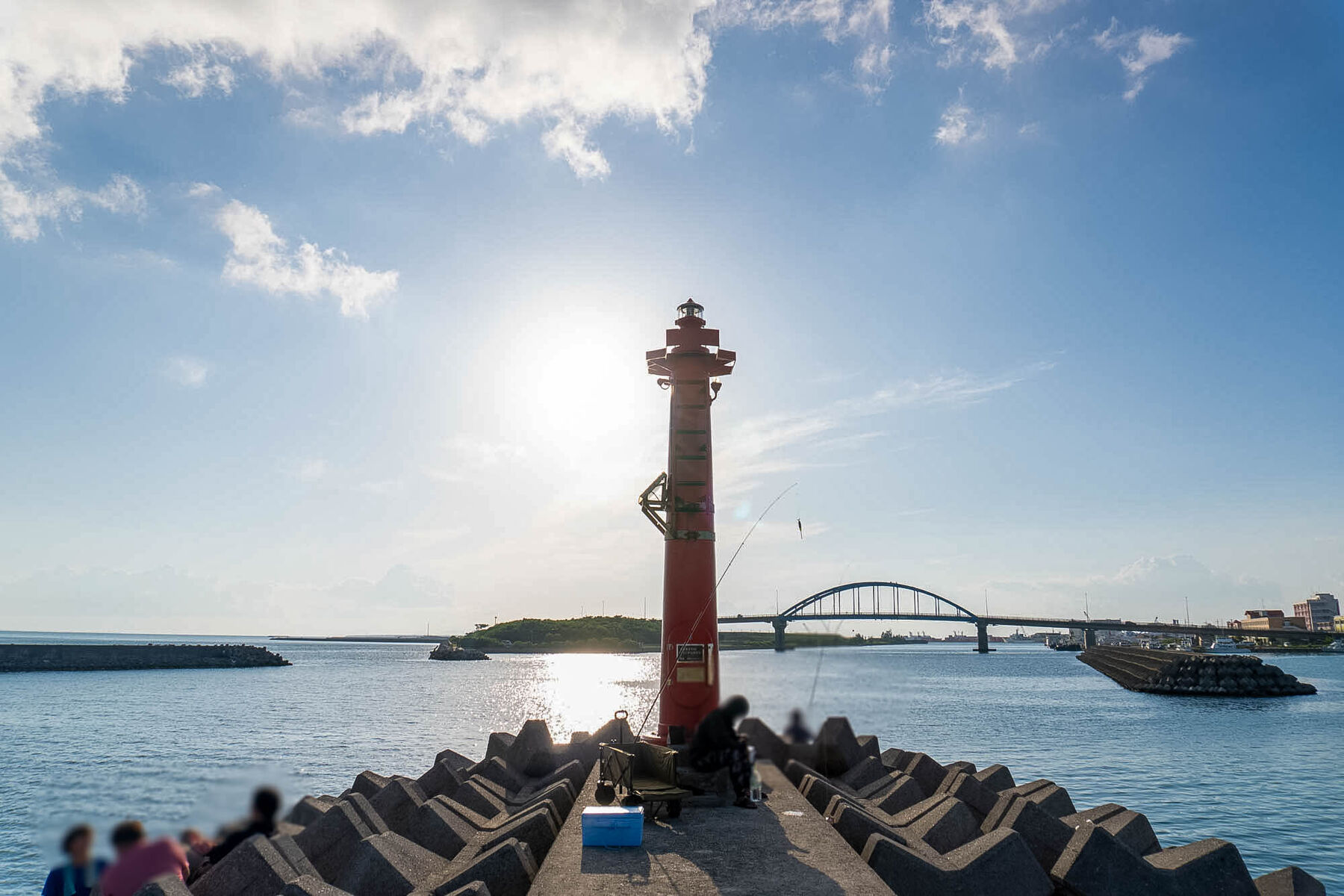 防波堤の一番端には八重山諸島では希少な防波堤灯台が。