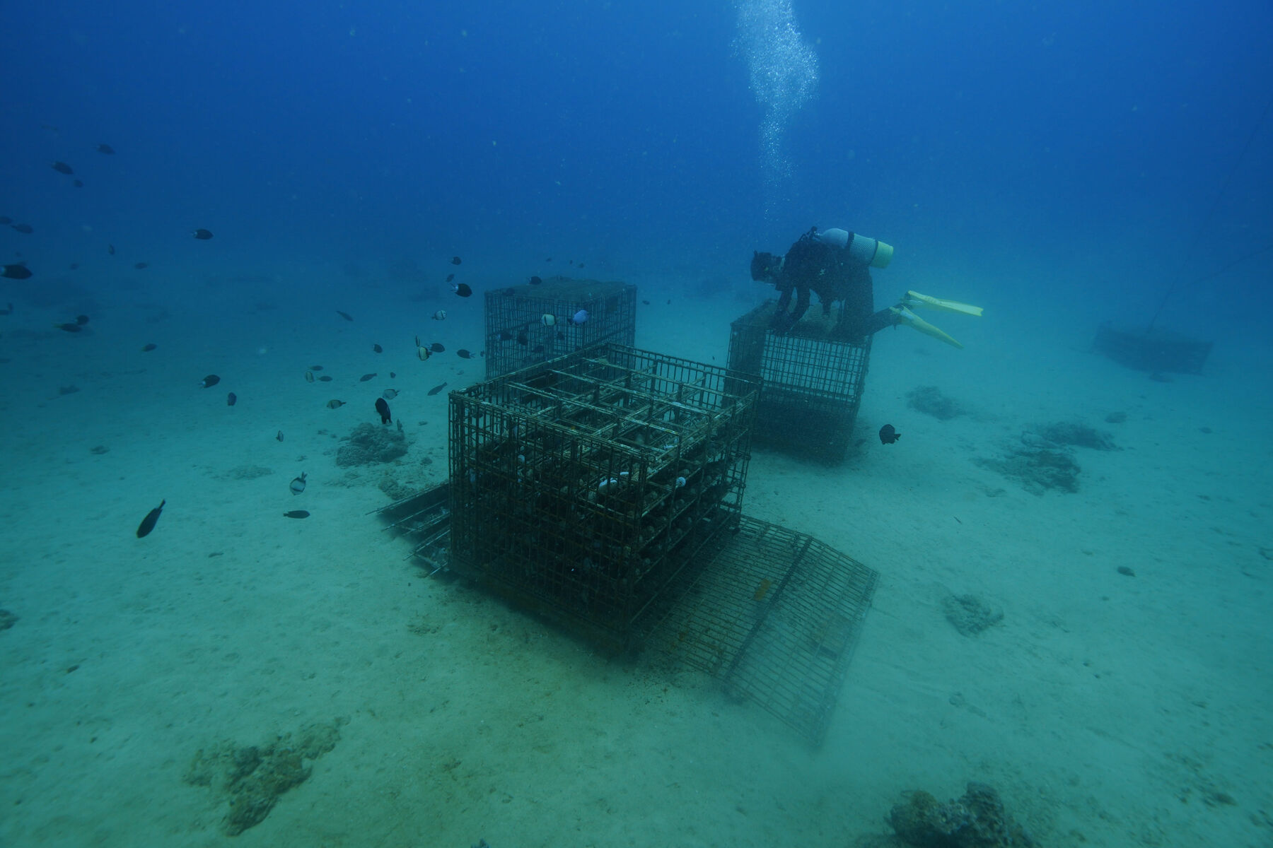 清水沖の透明な海の底に、約200本のワインがそっと沈められました。
