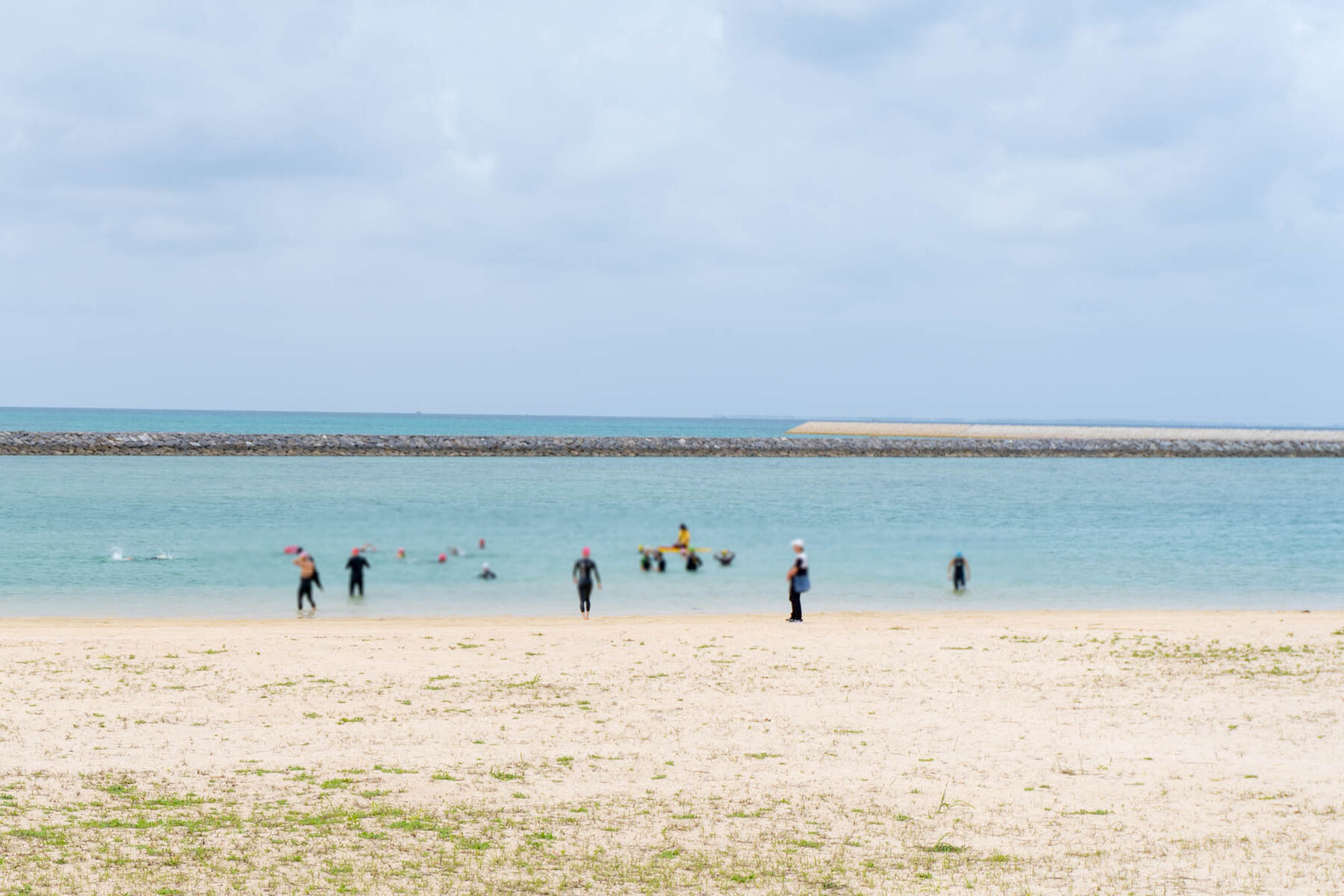 前々日の本日4月19日にスイム会場となっている南ぬ浜人工ビーチで試泳の時間が設けられていたので、会場に行ってきました!