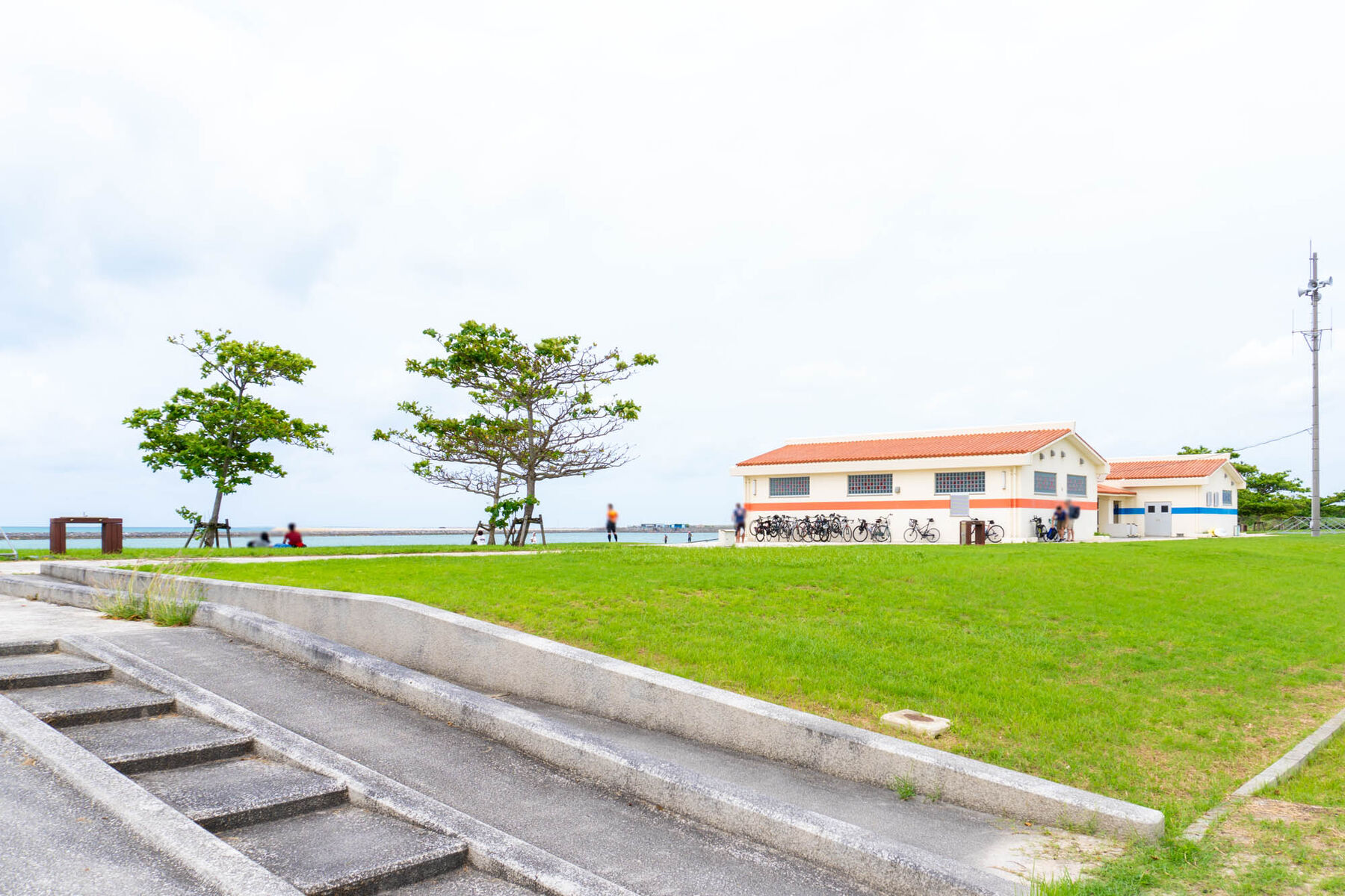 南ぬ浜人工ビーチの管理棟前にはトライアスロンの運営の方々が試泳の受付などを行っていました。