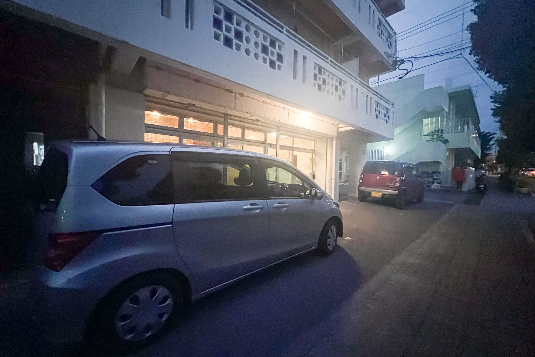 さらに手前側にも駐車場の白枠があるのですが、この2台以外はマンションの方の駐車場なので、駐車スペースを確認してから停めてくださいね〜