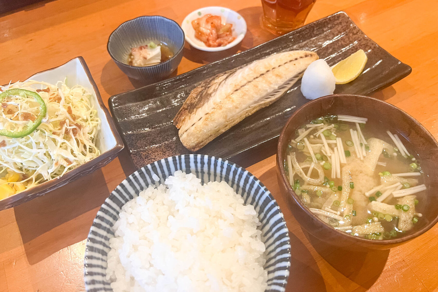 サバもちょうどよい塩加減で、レモンを絞りながらいただくのがまた良いですよね。