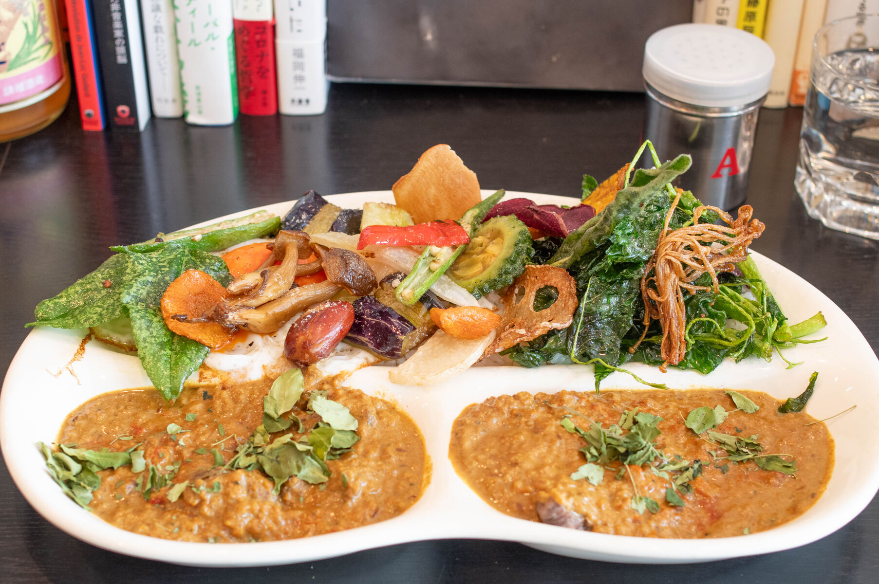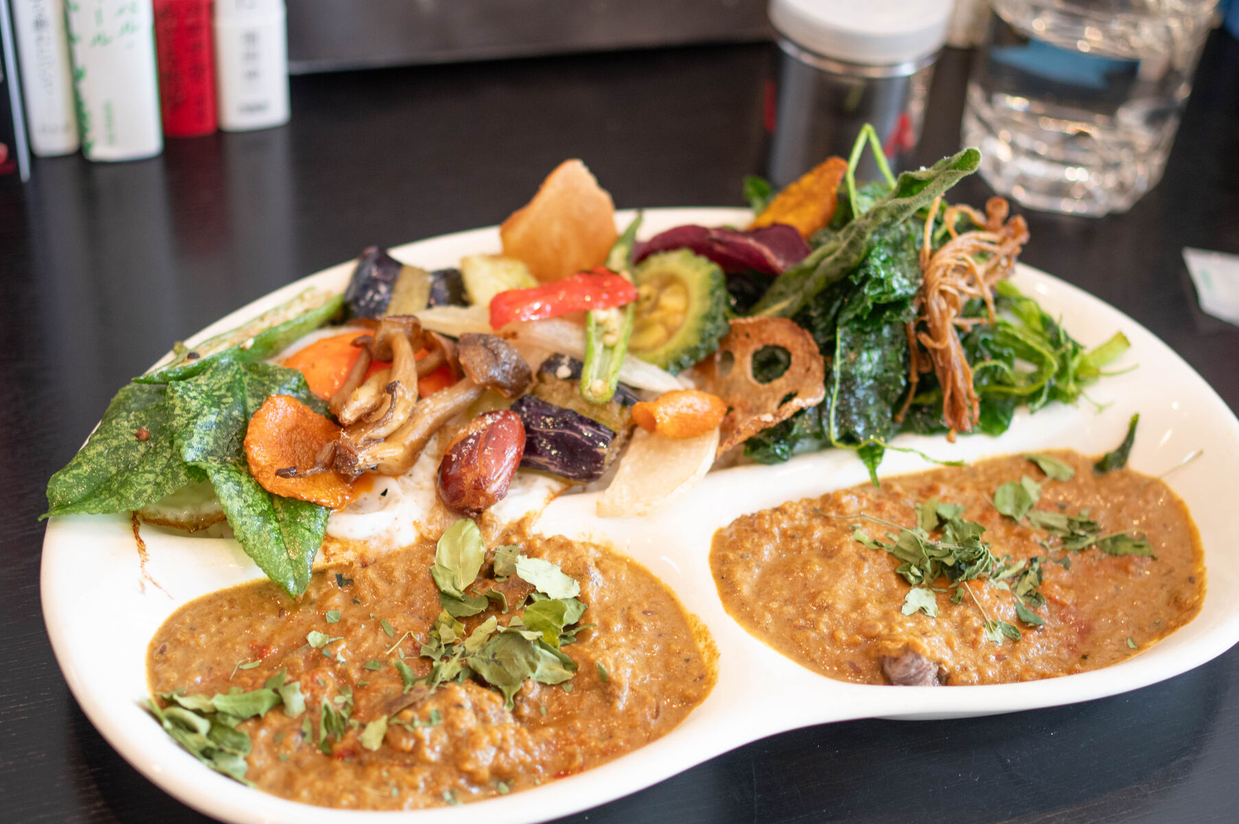 野菜はカレーにディップし食べ進めるスタイル。スパイシーな味によく合います。