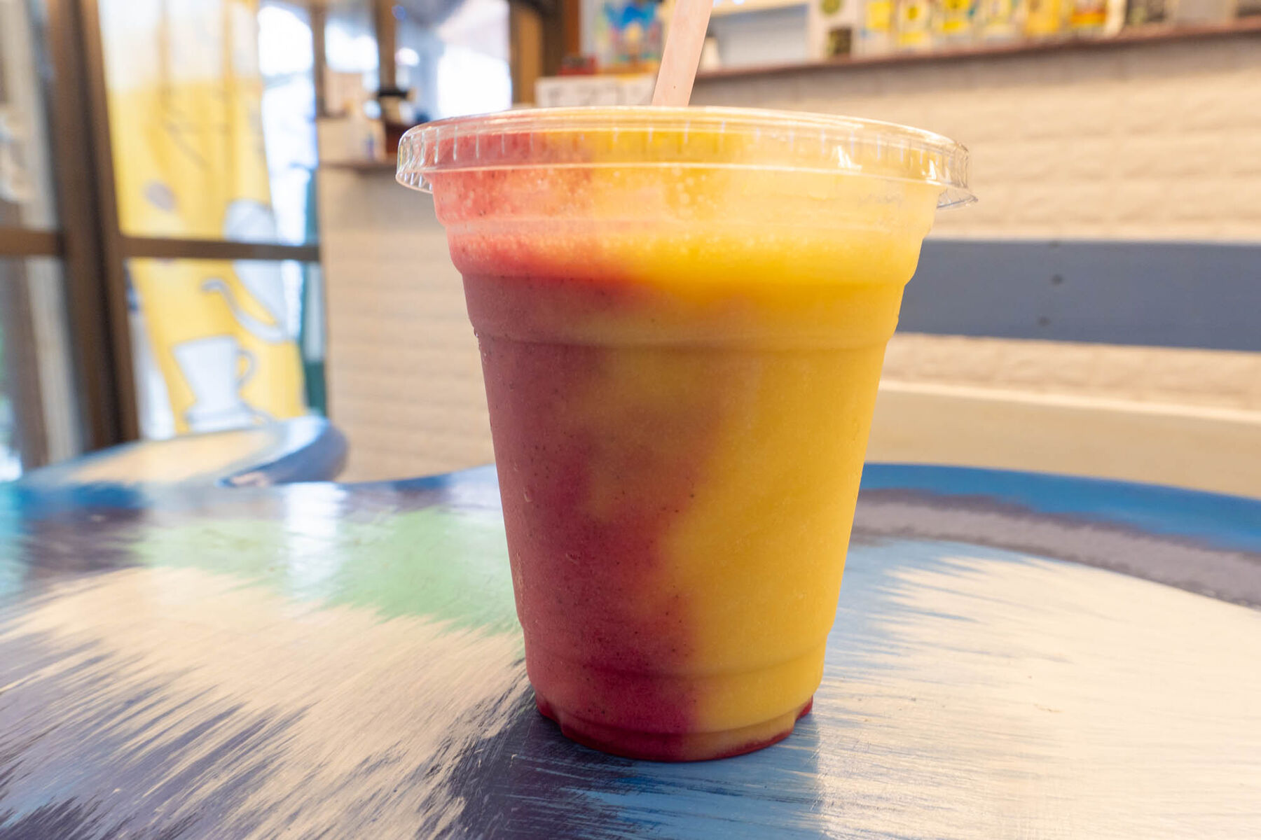 スムージーはわりとさっぱりサラサラ系ですが、意外とマンゴーとドラゴンはミックスされず、まずはそれぞれの味を楽しむのがおすすめ!