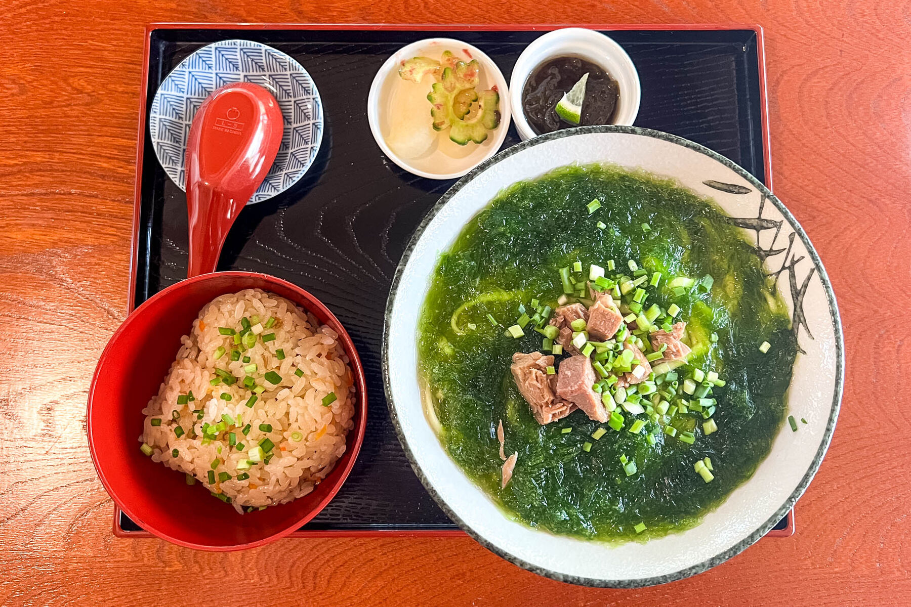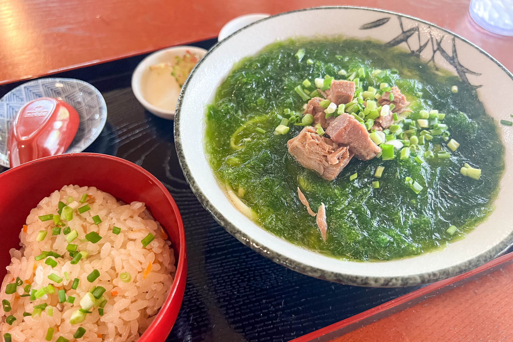 今回はアーサそばとじゅーしーを注文!