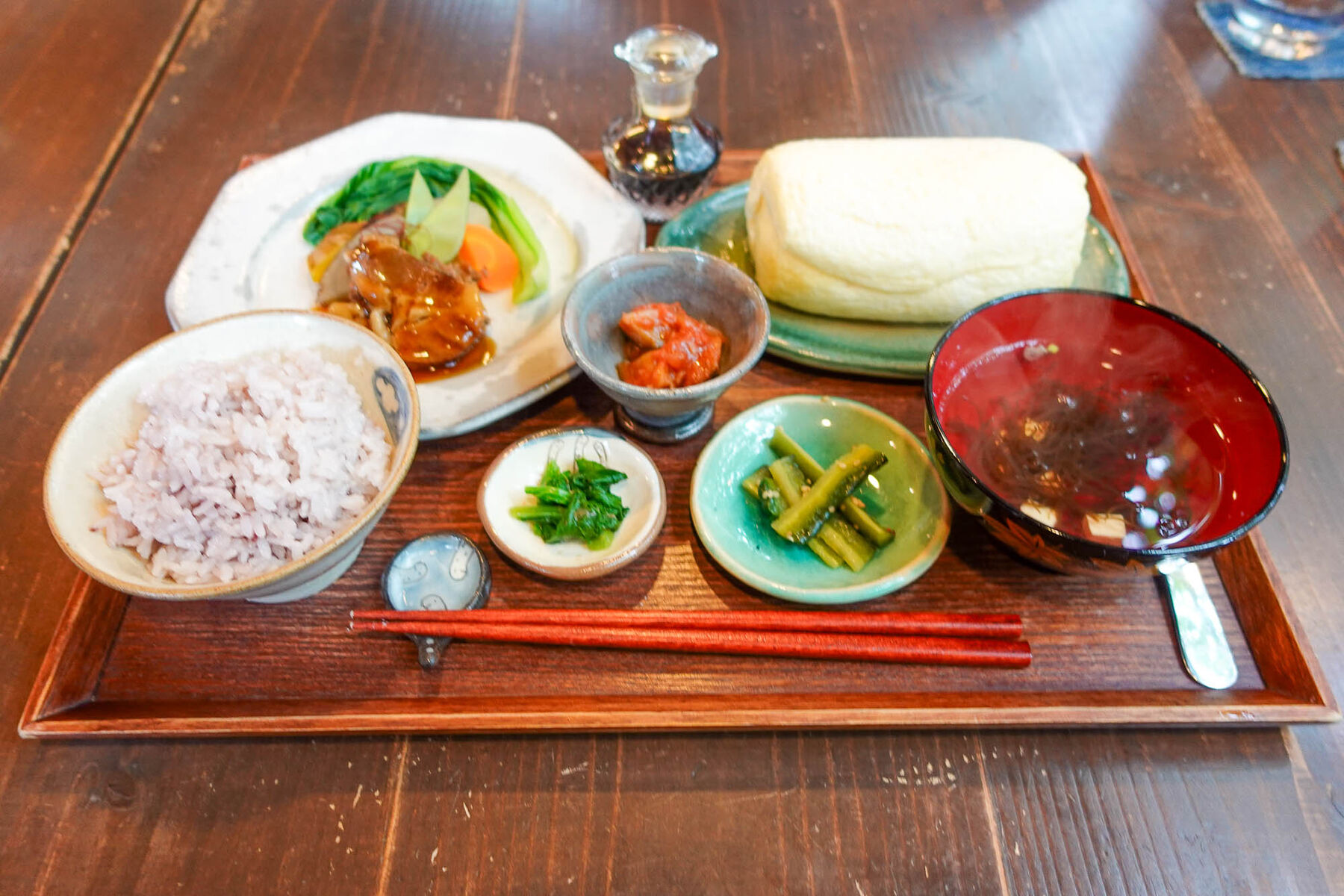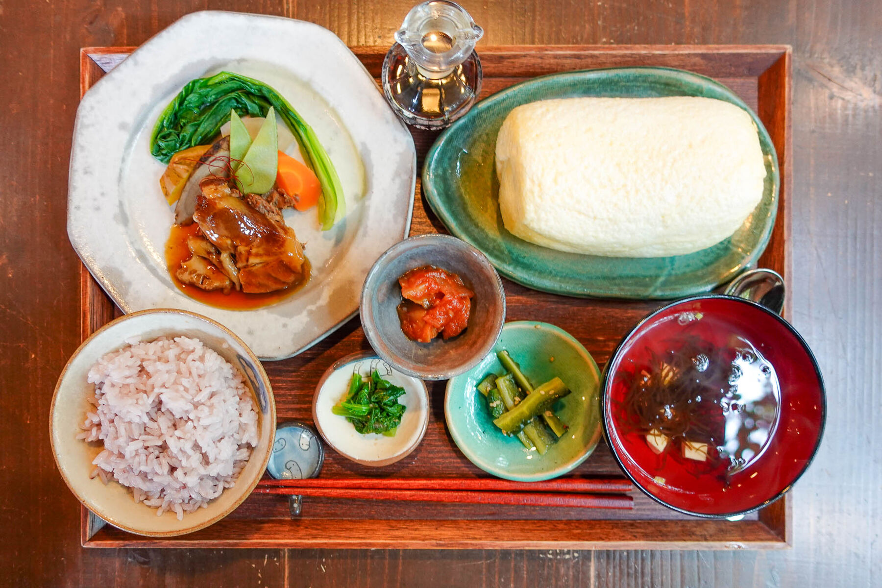 今回は「ばんちゃん御膳」を注文!おかずは”ふわっとろのだし巻き卵”と”豚肩ロースやわらか煮込み”をチョイス!