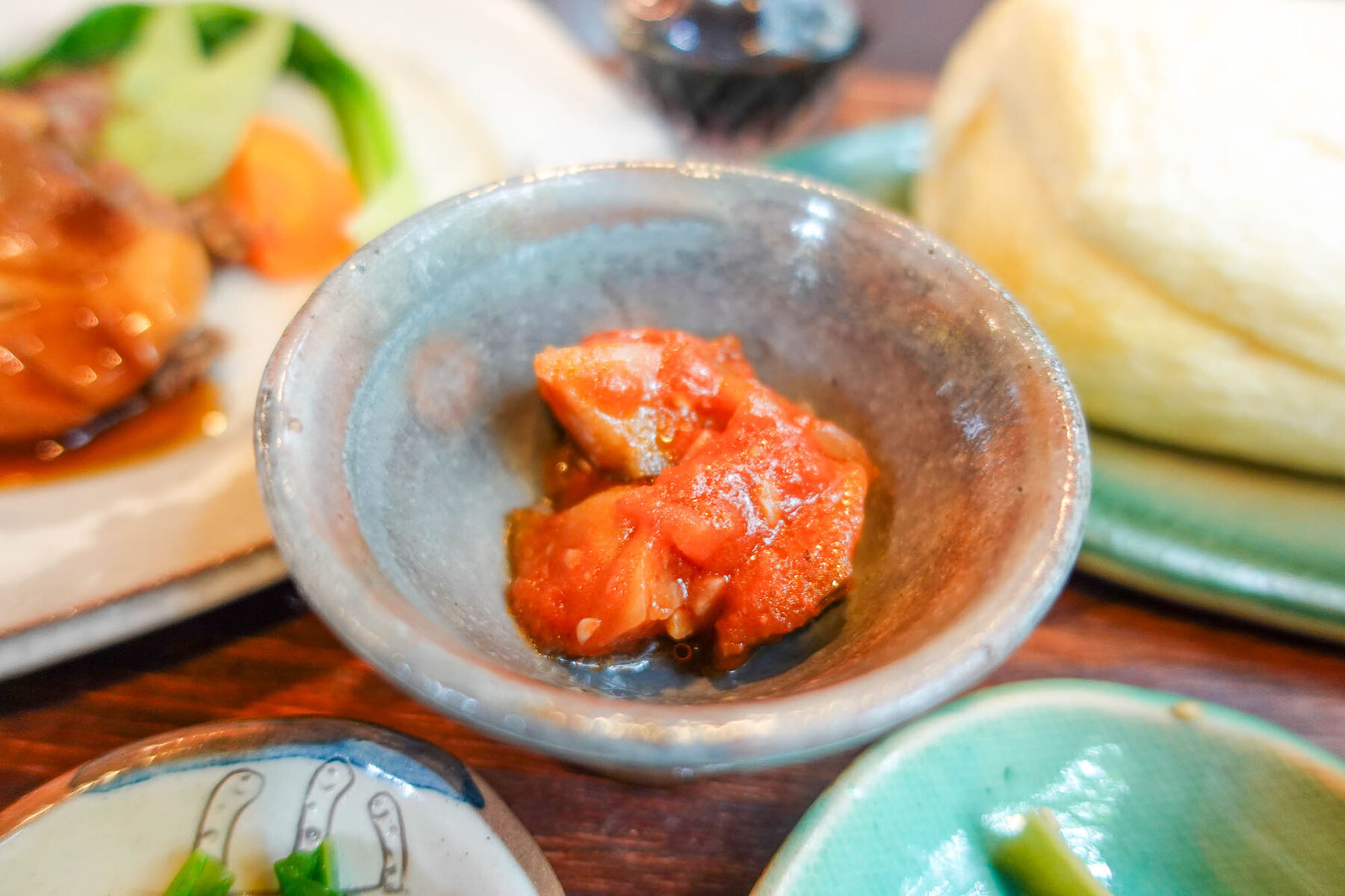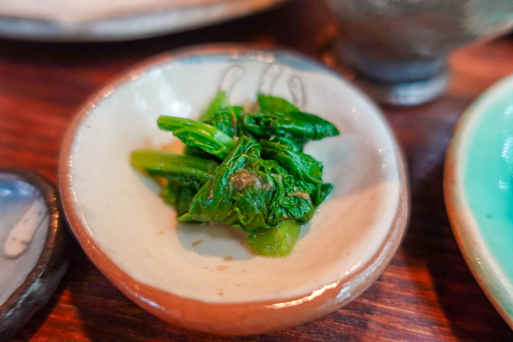 小鉢にはからしなのおひたし、ナスのラタトゥーユにゴーヤのきんぴらが!どれも美味しくて最高です。沢山おかずがあるのは嬉しい〜!