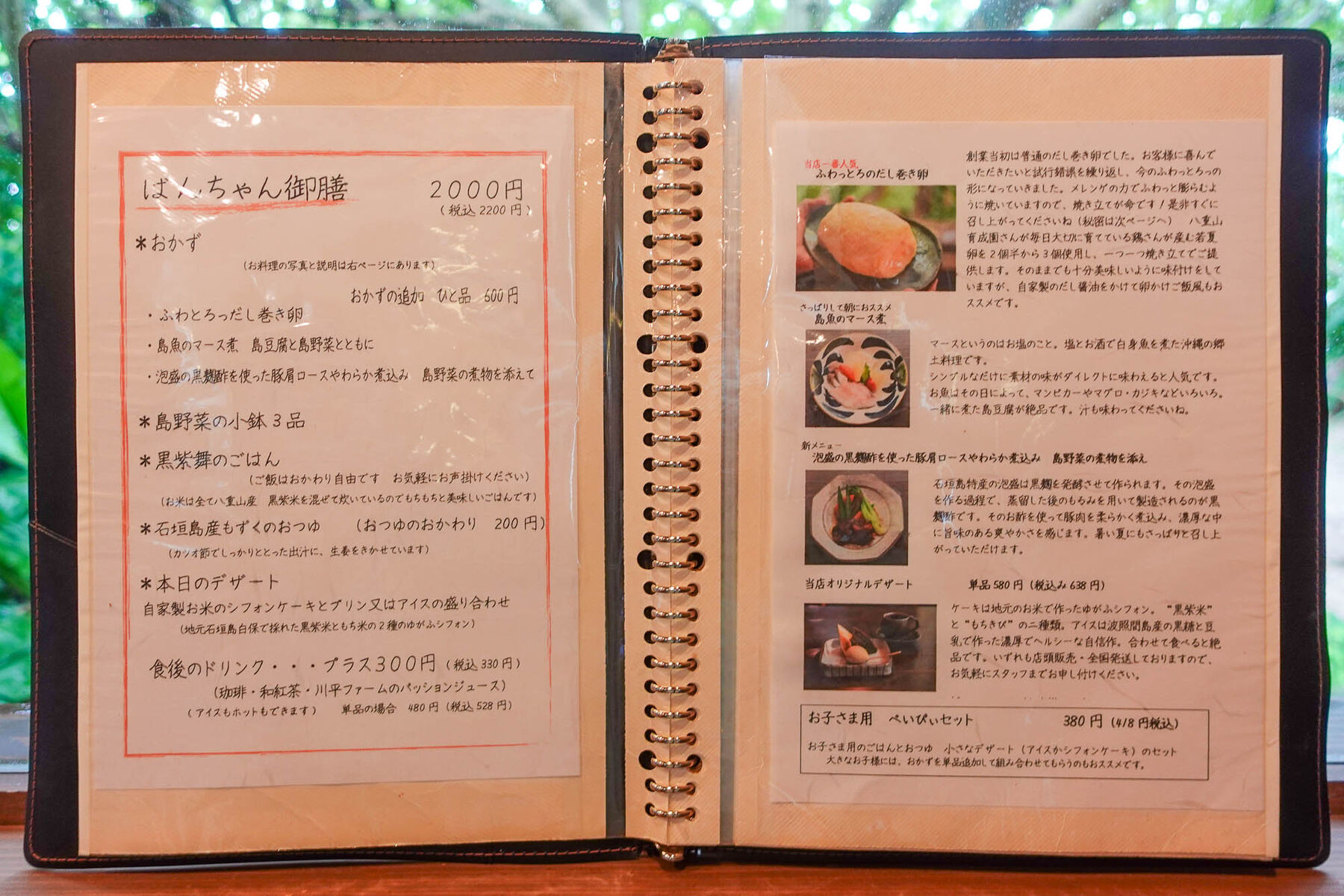 ご飯は「ばんちゃん御膳」のみ。右のおかずから2つ好きなのを選べるみたい!