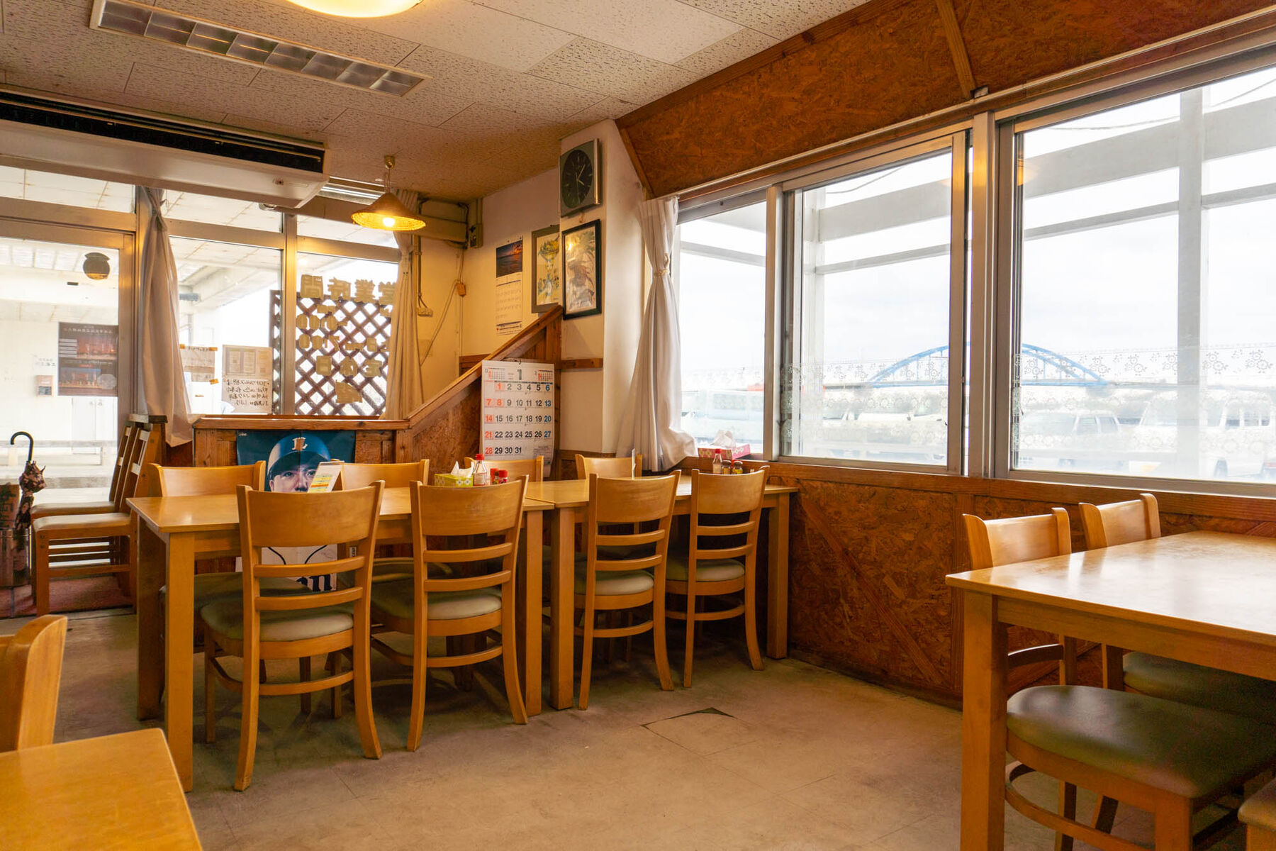 店内はテーブル席とお座敷が。店内からもサザンゲートブリッジが見えます。