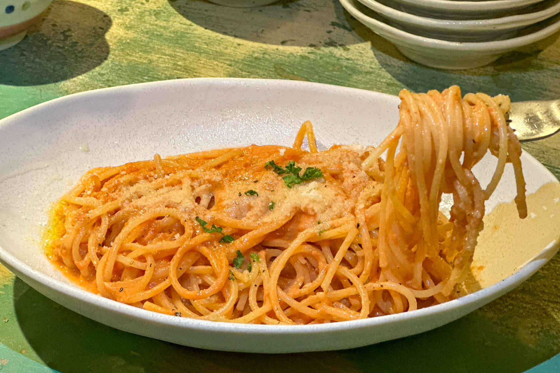 パスタはアルデンテで少しかたく、弾力感があって美味しい!!