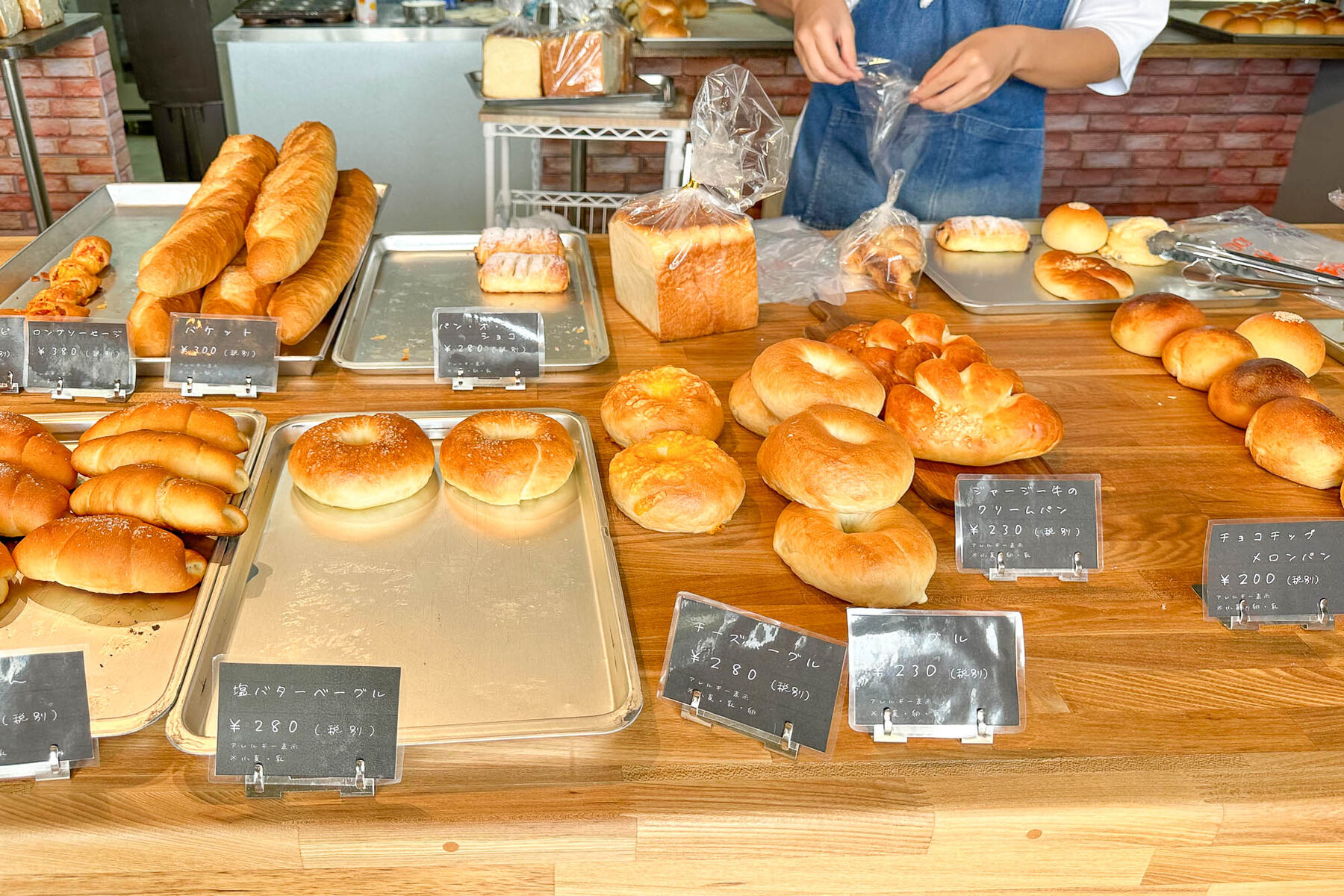 「ミニクロワッサン(50円)」「明太エッグサンド(280円)」「明太フランス(250円)」「ジャージー牛のクリームパン(230円)」「パン・オ・ショコラ(280円)」です!