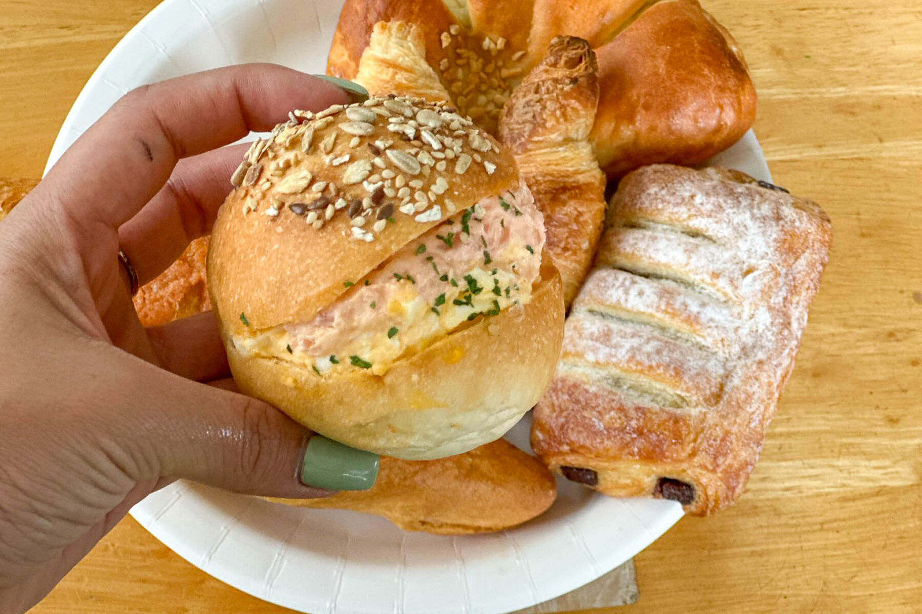 今回はテイクアウトしたのは「ミニクロワッサン」「明太エッグサンド」「明太フランス」「ジャージー牛のクリームパン」「パン・オ・ショコラ」。