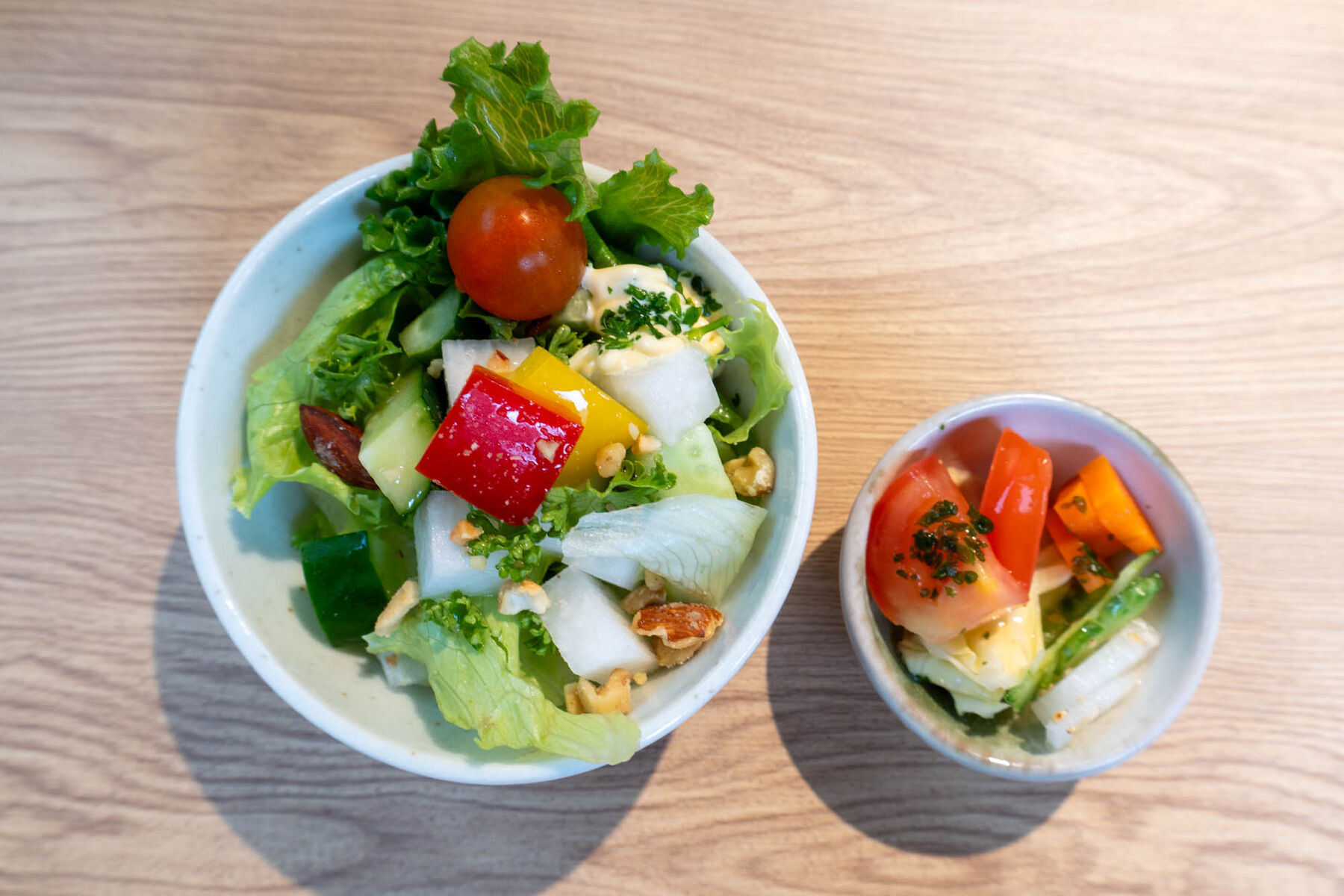 まず出てきたのがセットのサラダと浅漬。彩りがとってもきれい!写真映えもしそう。