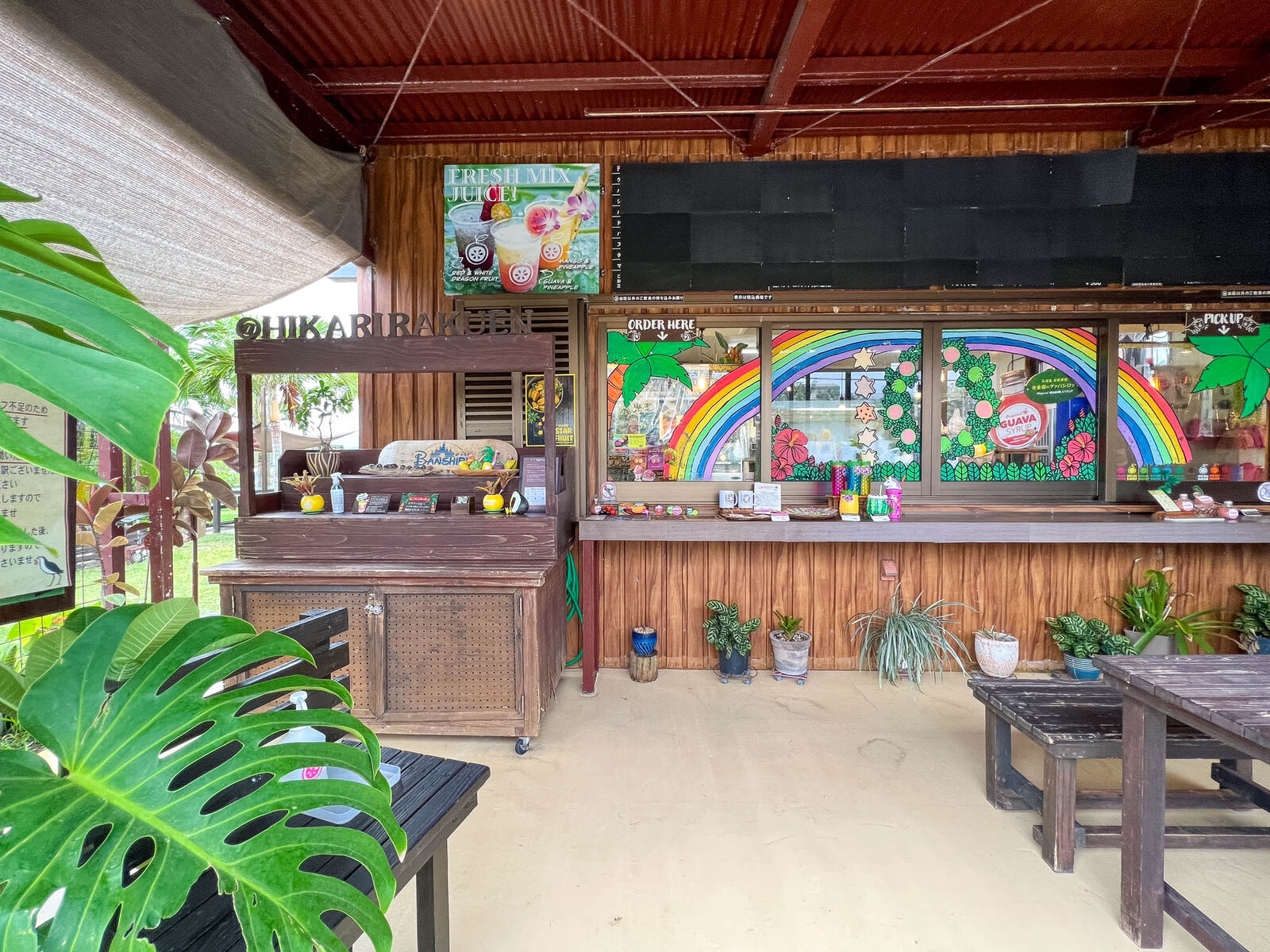 外観はこんな感じ。グリーンに囲まれていて南国のジュース屋さん感が!