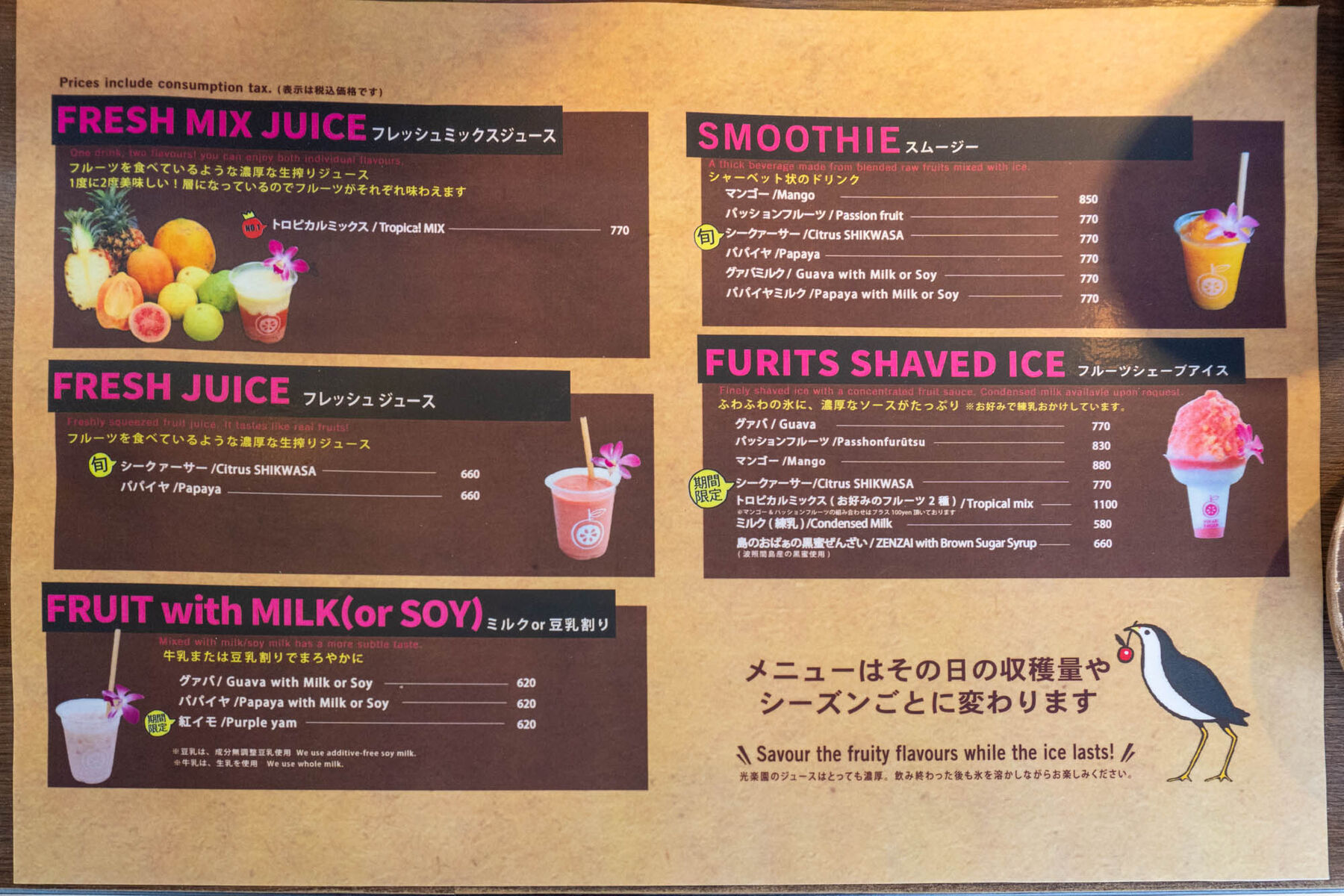 石垣島で育ったトロピカルフルーツを使用したジュースやスムージー、かき氷などが気になる方は是非チェックしてみてくださいね!!