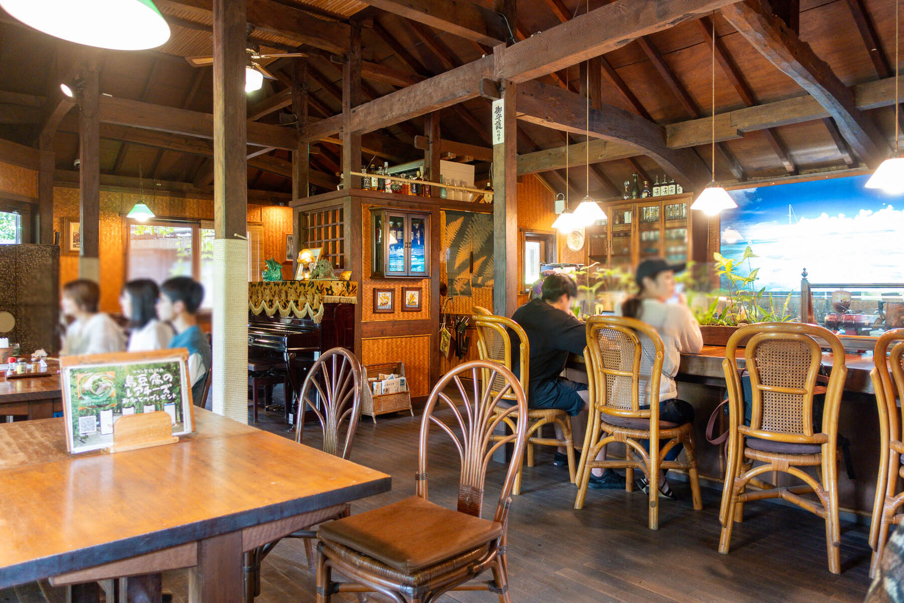 別棟の店内はテーブル席とカウンター席が!ウッド調で落ち着く雰囲気。
