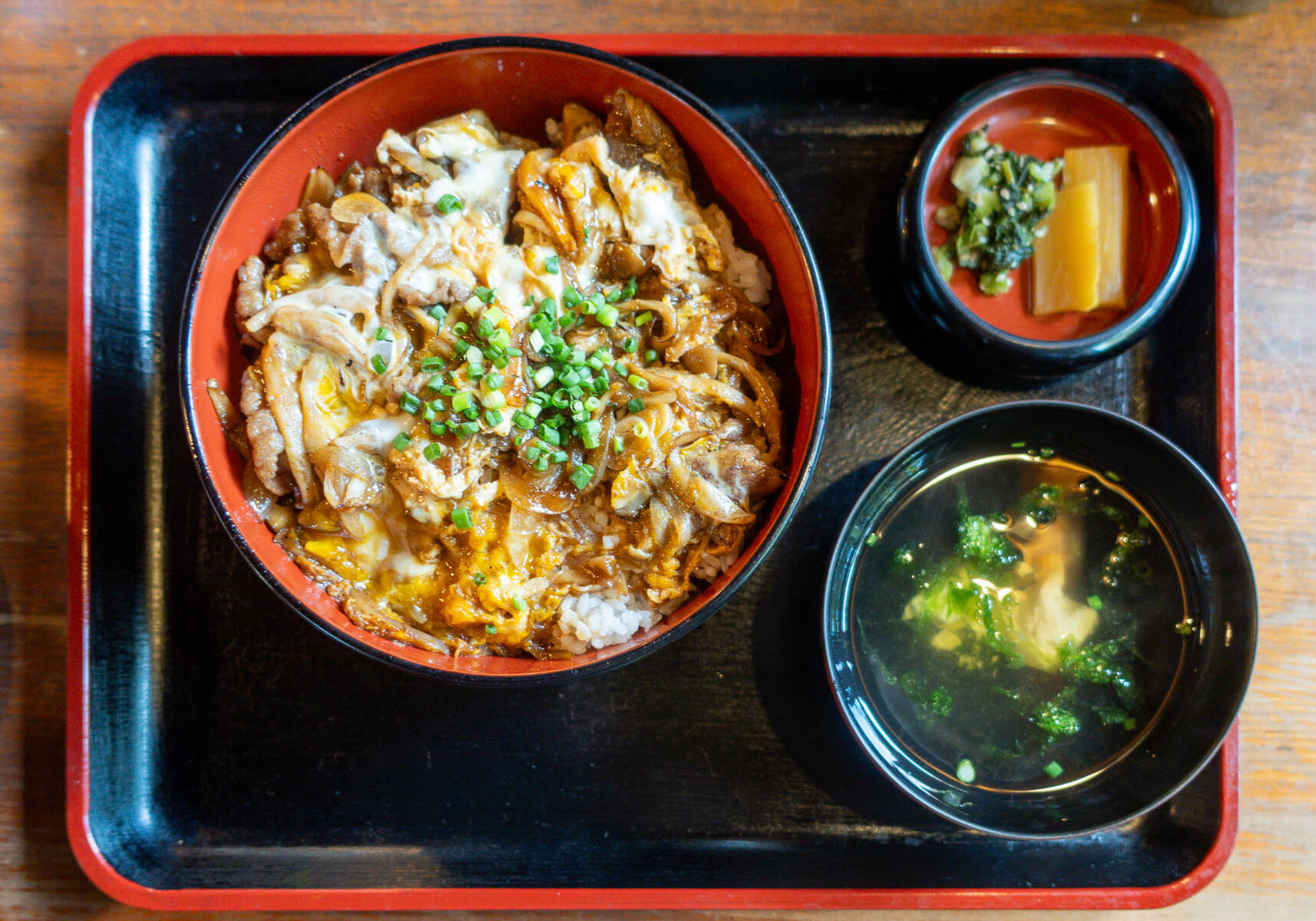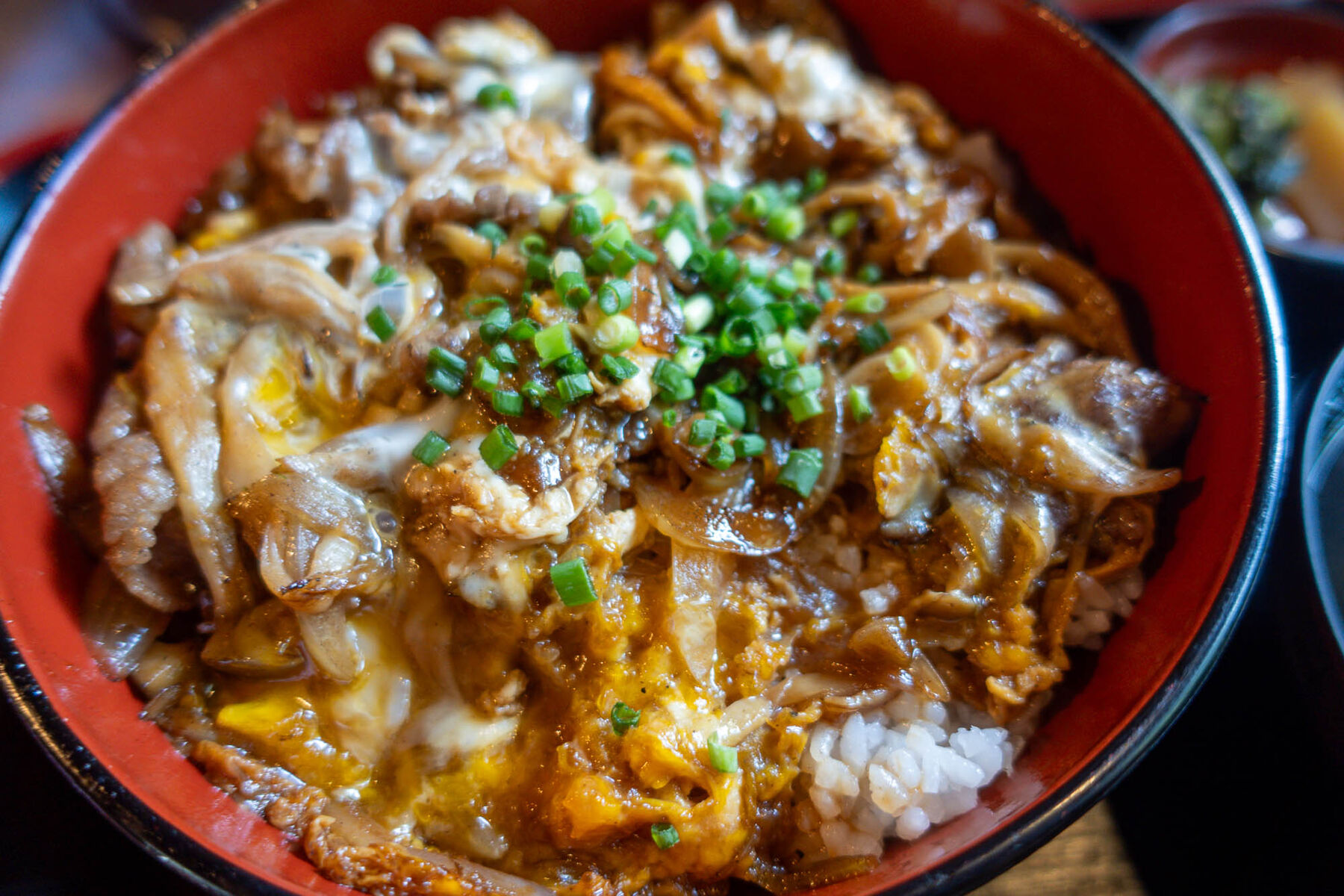 お肉とタレがマッチして、ご飯が進む!!牛丼なのに卵でとじていて、美味しい…タレがご飯に染みている感じもたまらない…!!