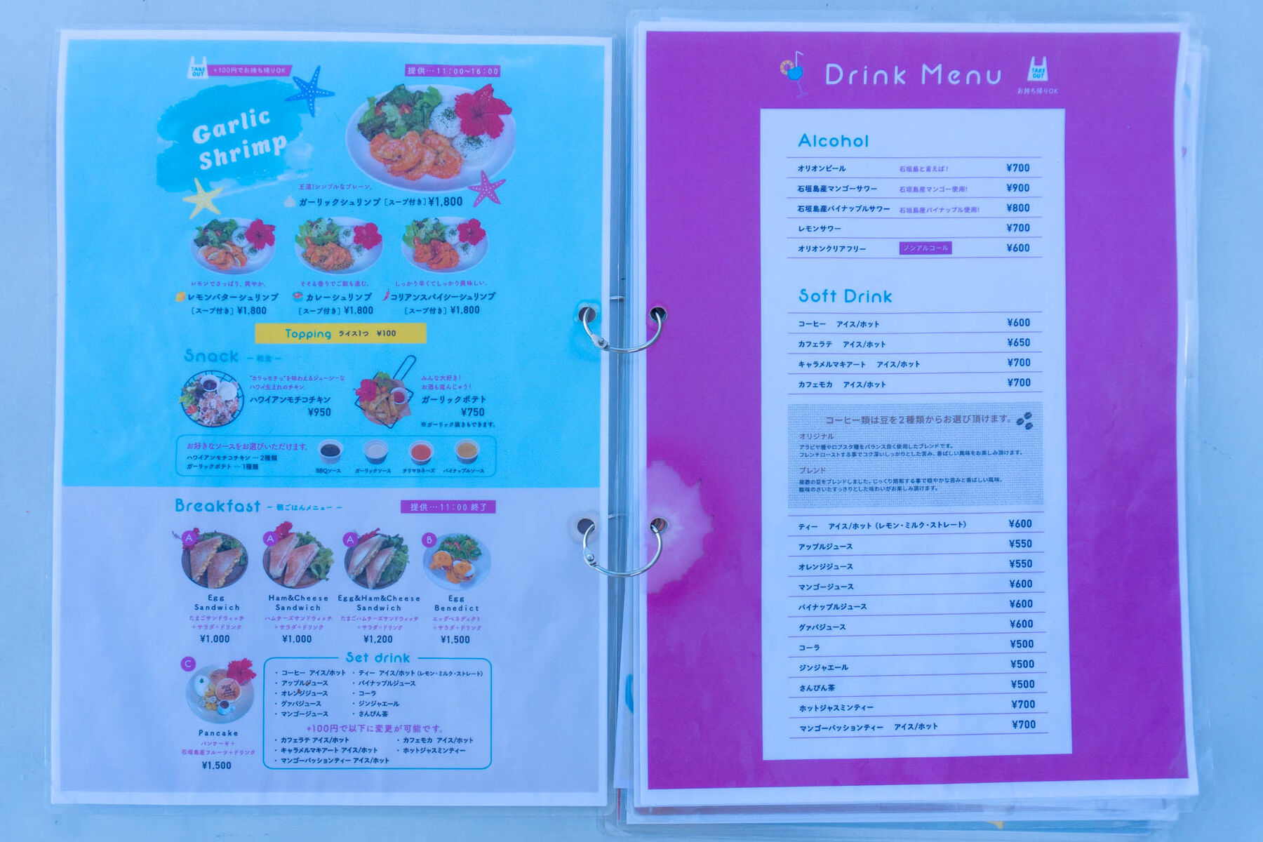 朝ごはん、ランチなどのフードメニューから