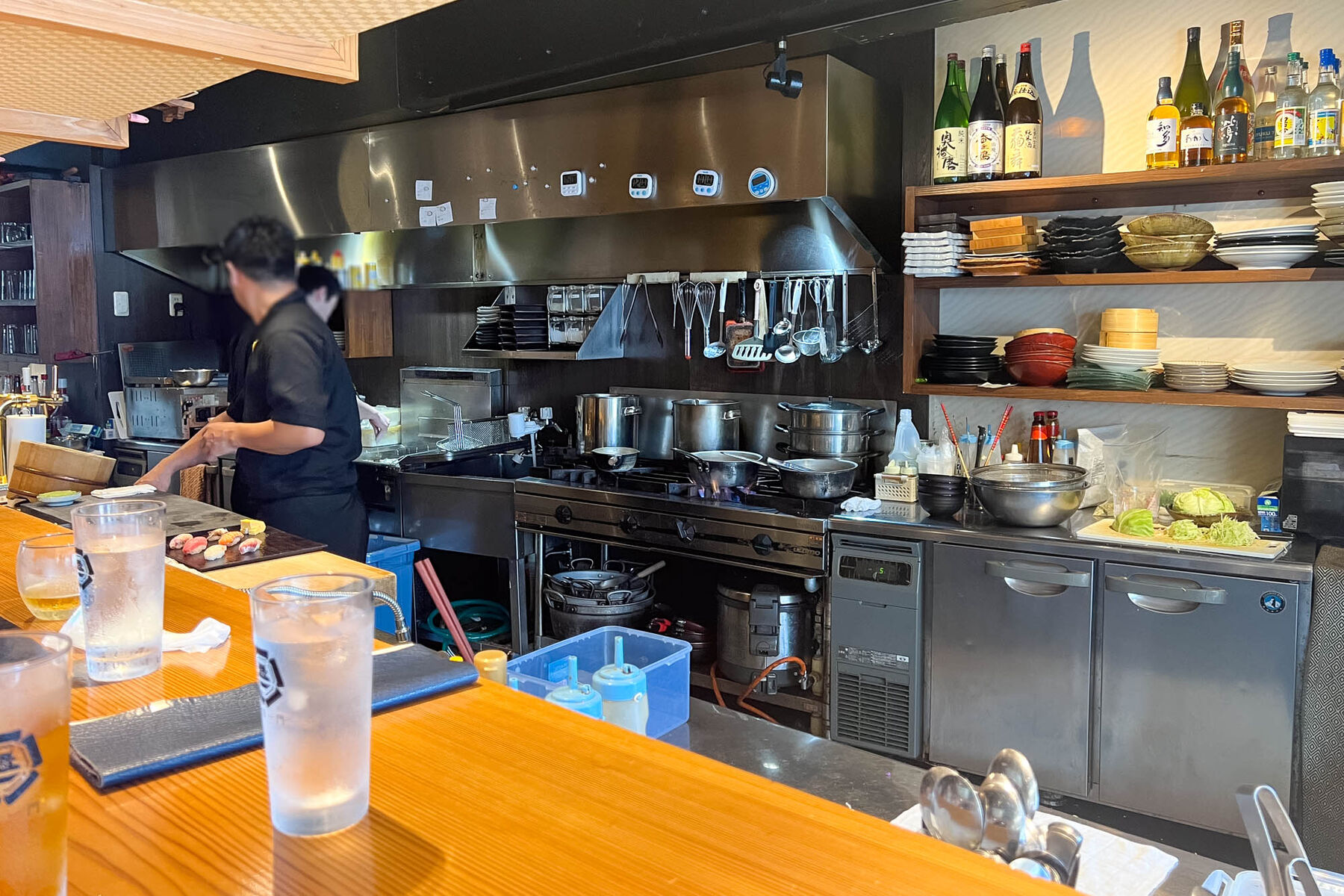 キッチンの真ん前のカウンター席は調理の様子も見えて特等席感が。
