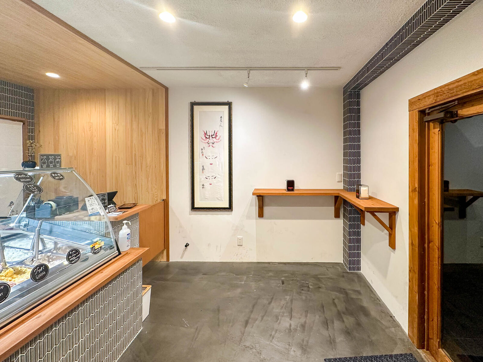 お店の中には机があり、立ちながらジェラートを食べる場所があります。