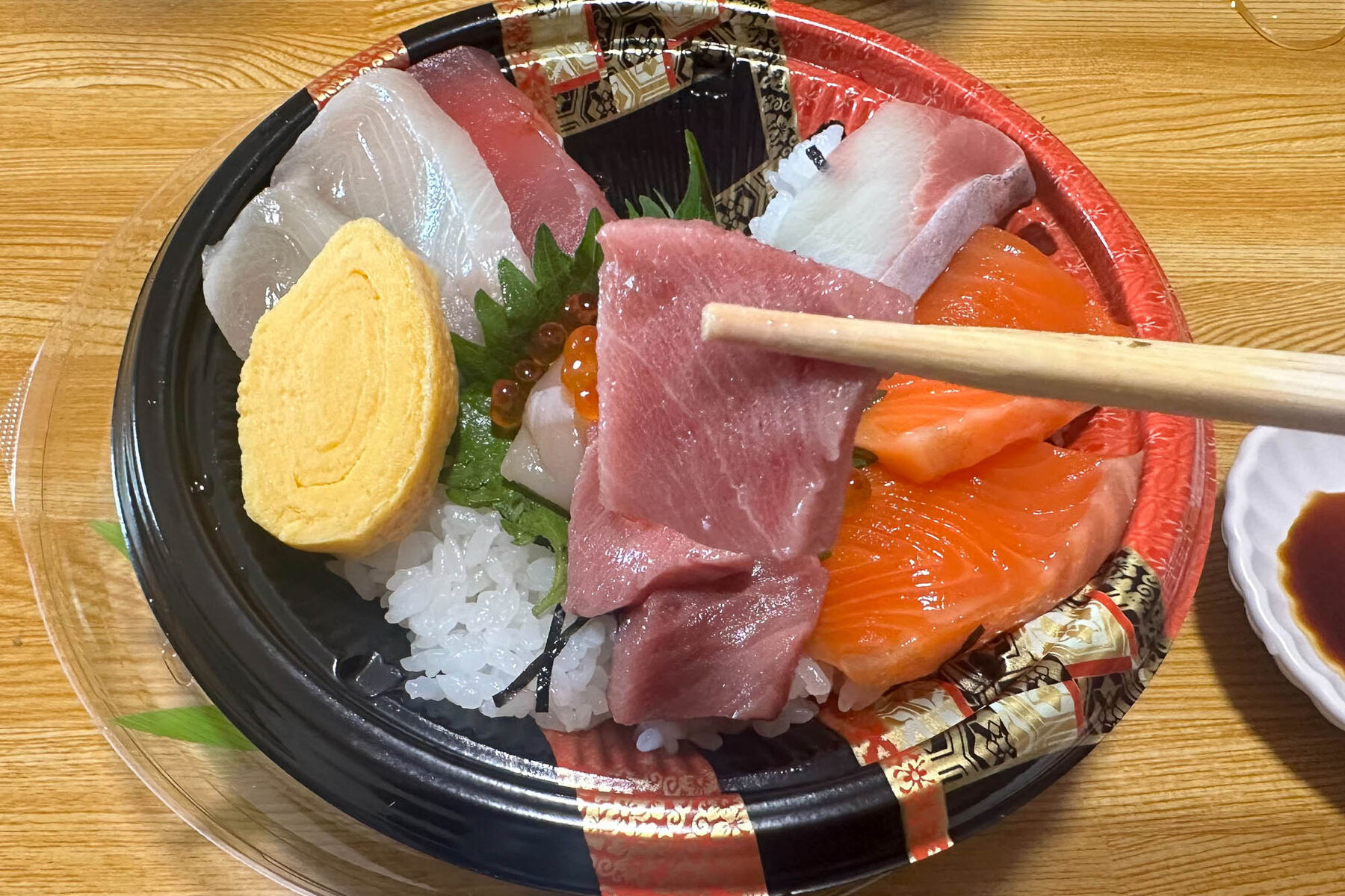 「石垣島 水産直売所」の『海鮮丼 本まぐろトロ入り』(石垣市登野城)【いしつーグルメ】