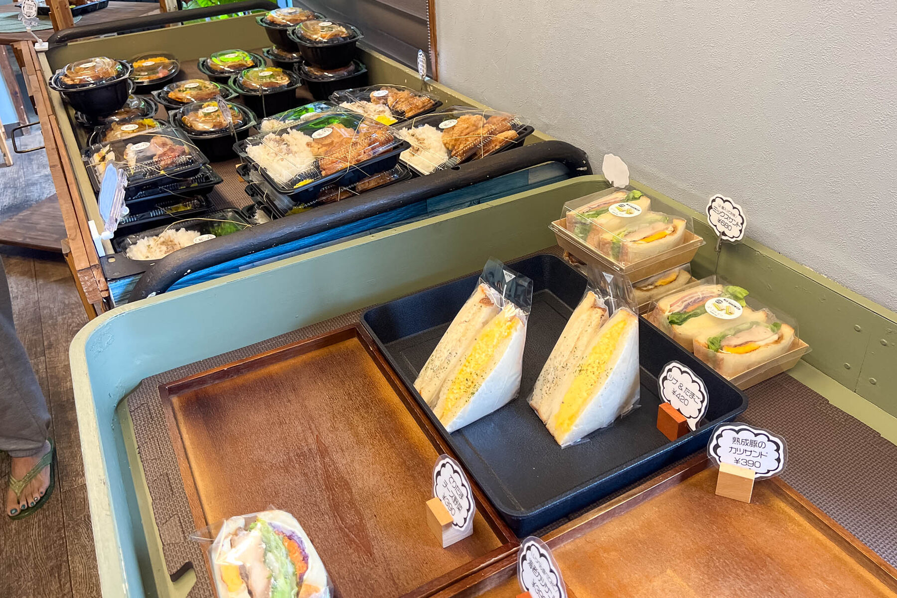 テイクアウト専門店で、サンドイッチとお弁当、
