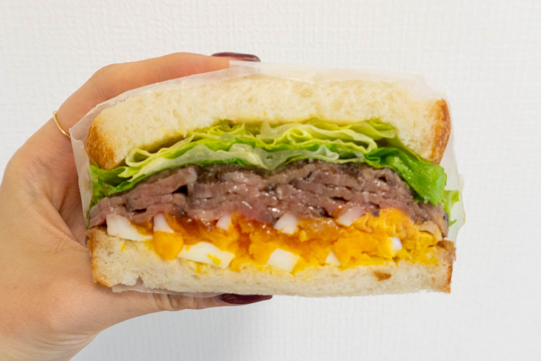 ローストビーフがたっぷりサンドされていて、なんとも贅沢なサンドイッチです!色味も綺麗!お肉の程よい脂身が◎!!