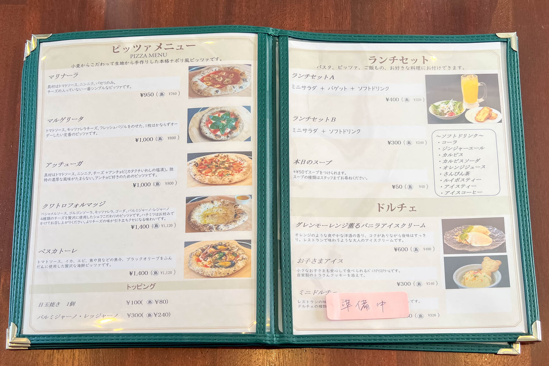パスタ、ピッツァメニューがメインで、種類も多め!ドリンクメニューも豊富です〜。