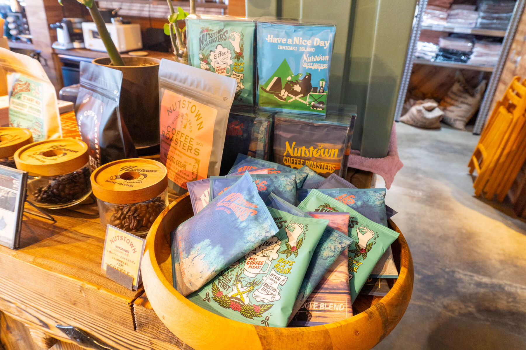 店内にはコーヒーグッズやお店で焙煎したコーヒー豆、ドリップコーヒーなども販売されております。