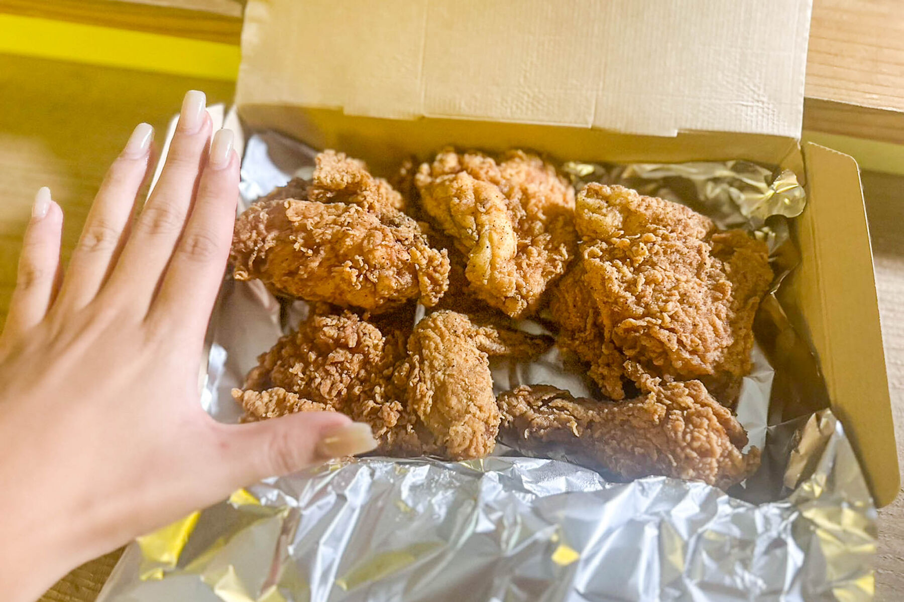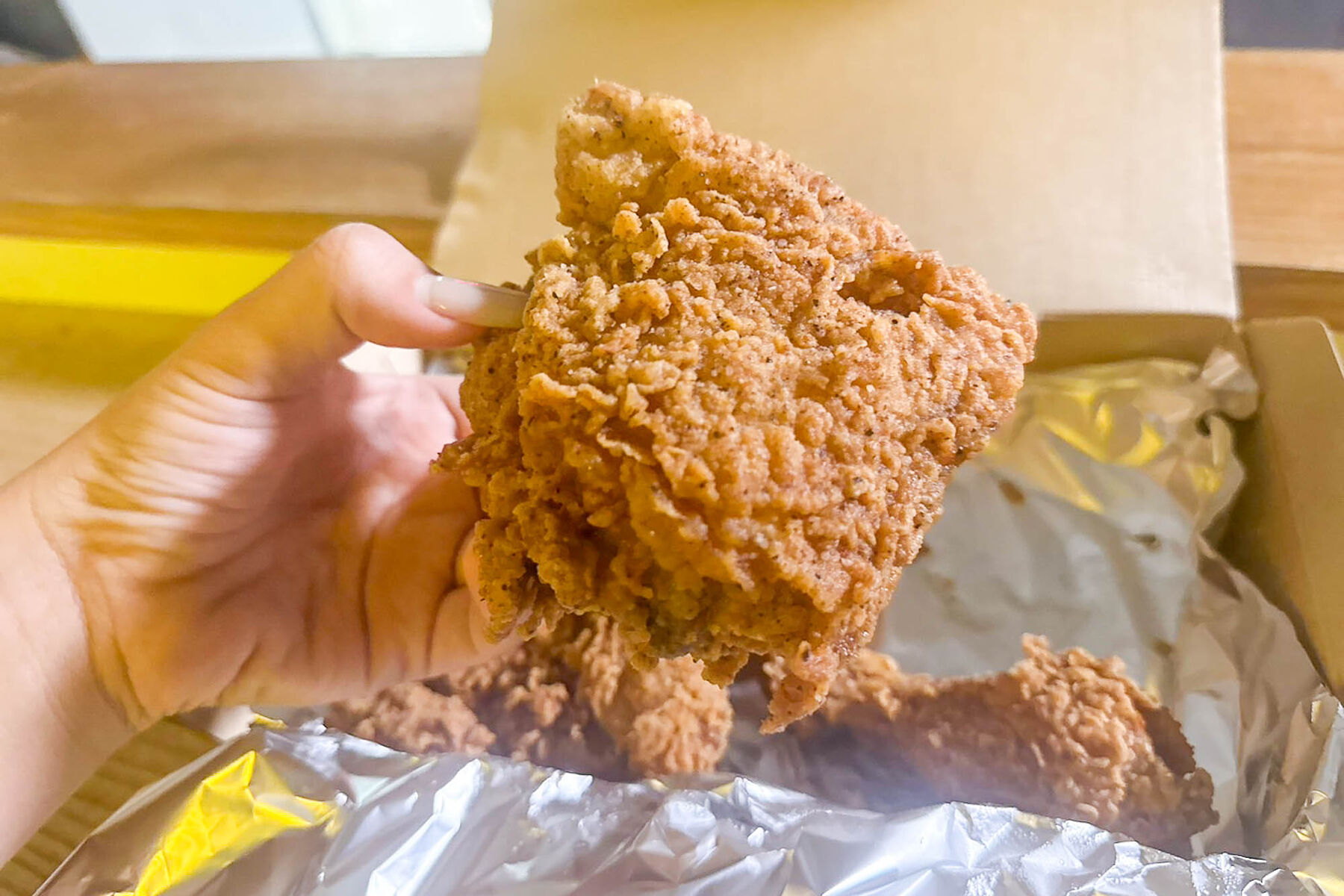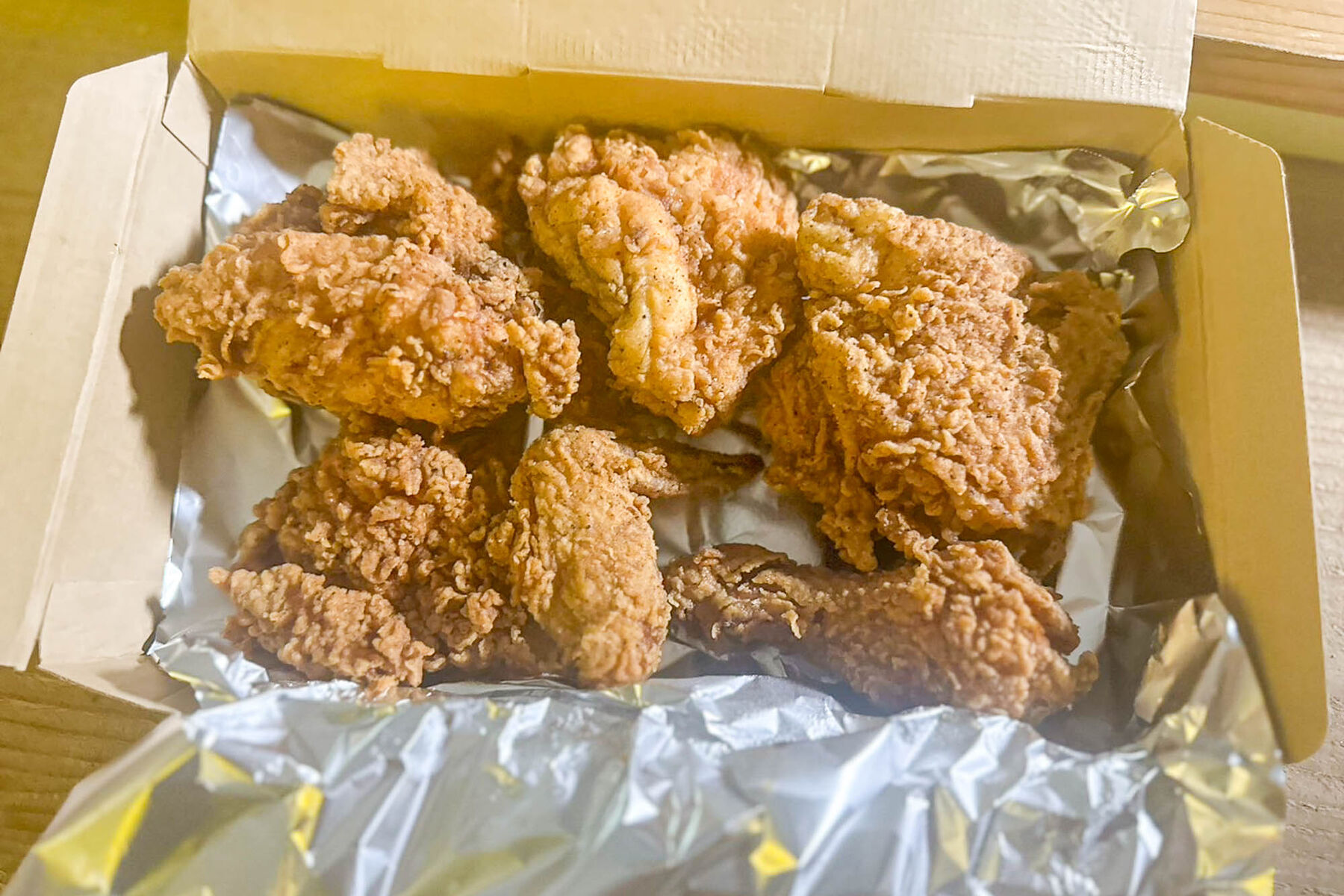 ハーフサイズはチキンが6つ入ってました!1つ1つがデカすぎる…手のひらサイズです。