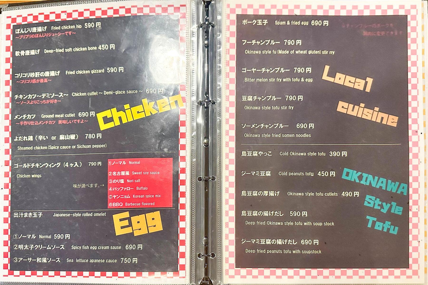 チキンがメインのお店。他には沖縄料理もありますよ!