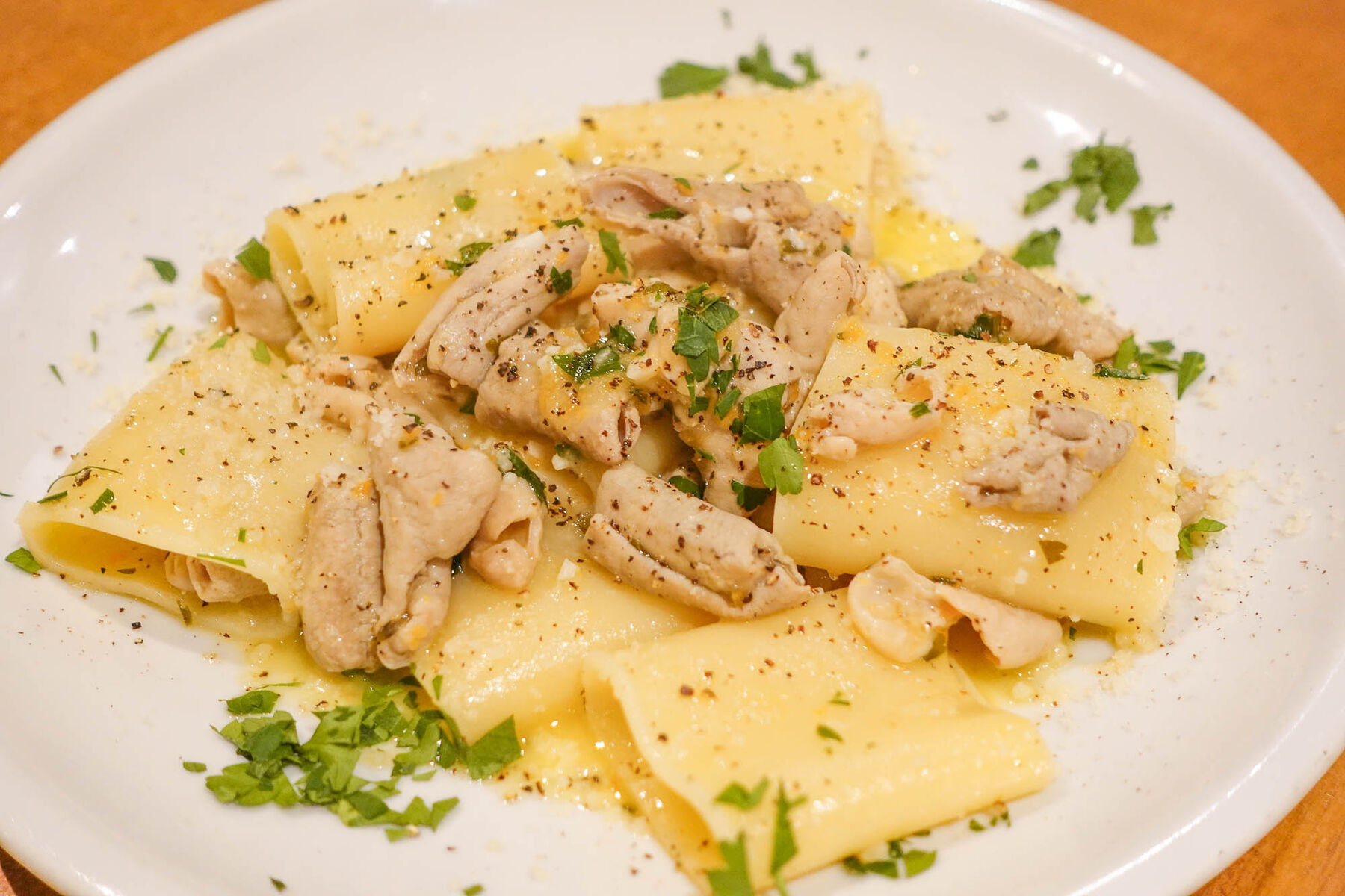 大きめのペンネにもつ肉が大量!オイルベースのパスタですが、くどくなくさっぱりしてて美味しい〜!ペンネが大きいので一口でいくと、口の中いっぱいにパスタを味わえて幸せでした…