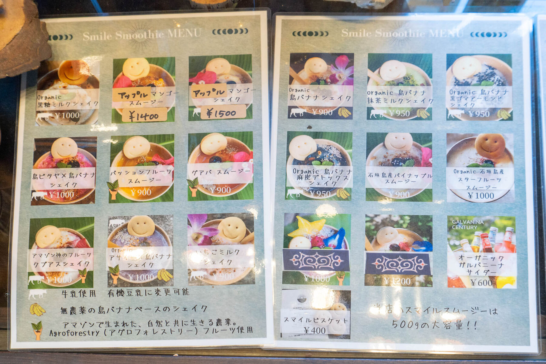 島バナナをベースとしたスムージーなどがズラリ。