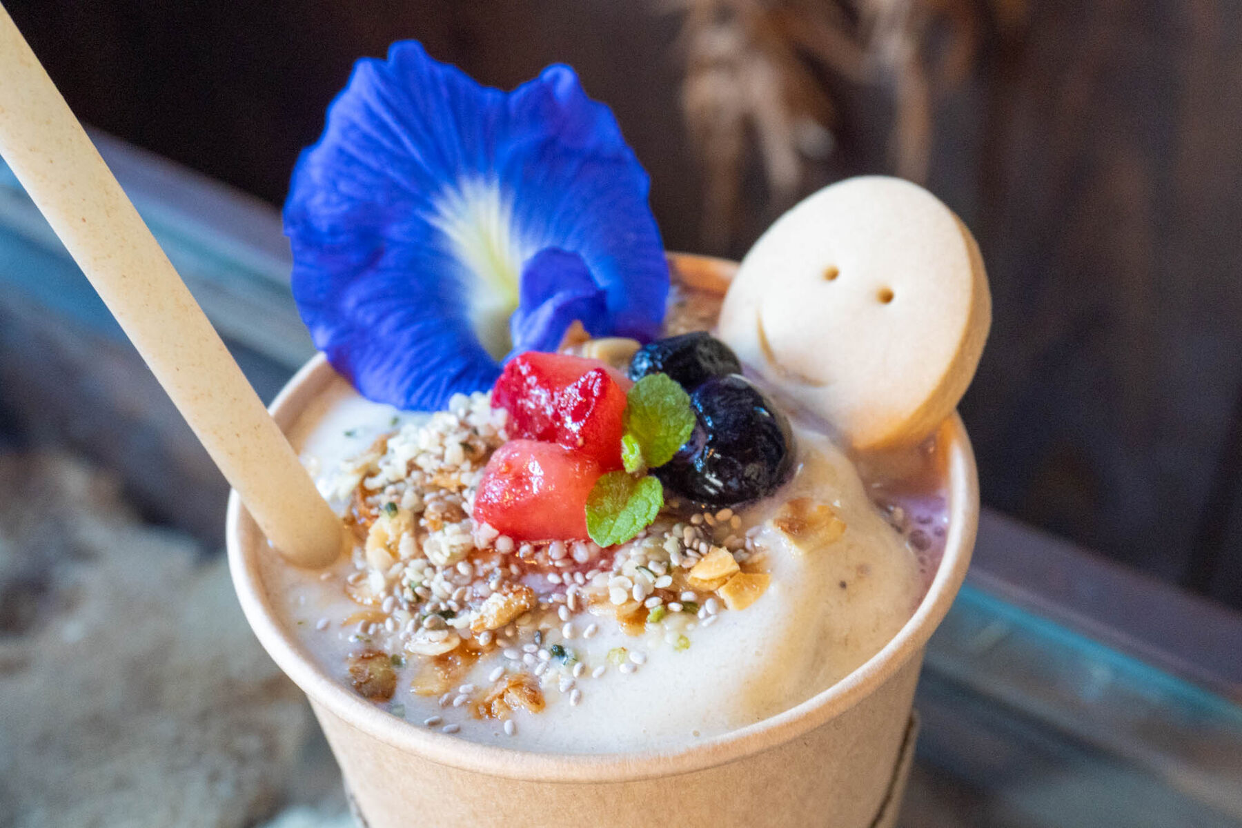 ベリーのトッピングもバランスが良く、スマイルビスケットもかわいい。