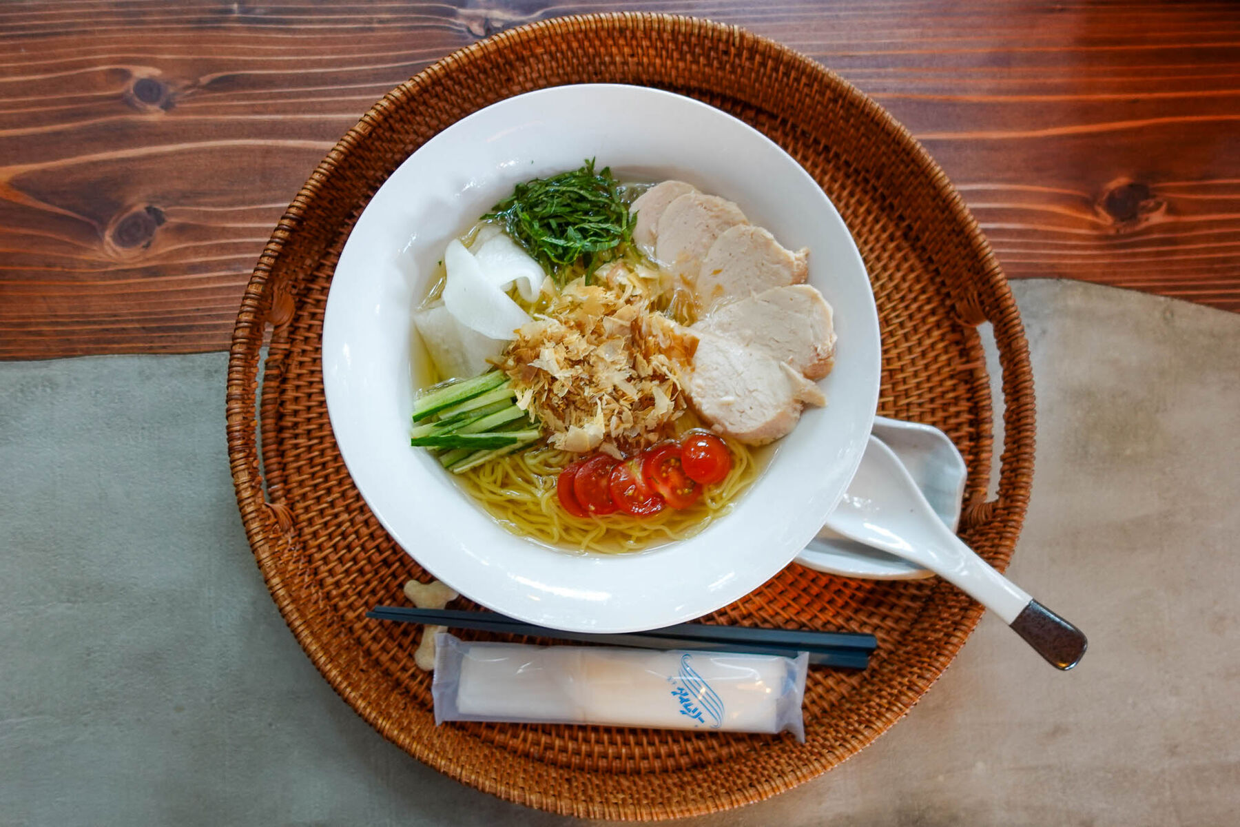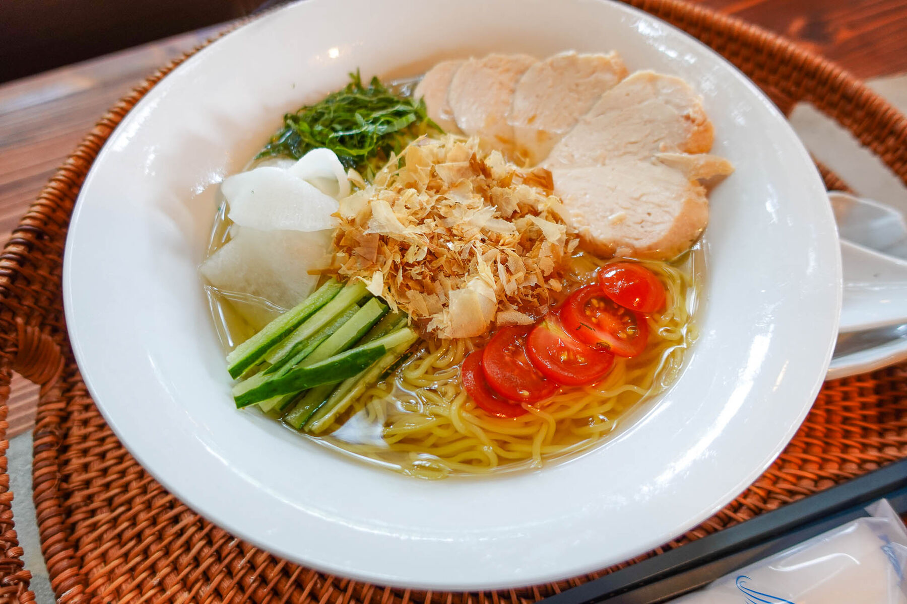 この日は快晴だったのでお店に着いた頃には汗だくだったのですが、「鶏ハム冷やし麺」を食べた瞬間から身体が一気に涼しくなりました