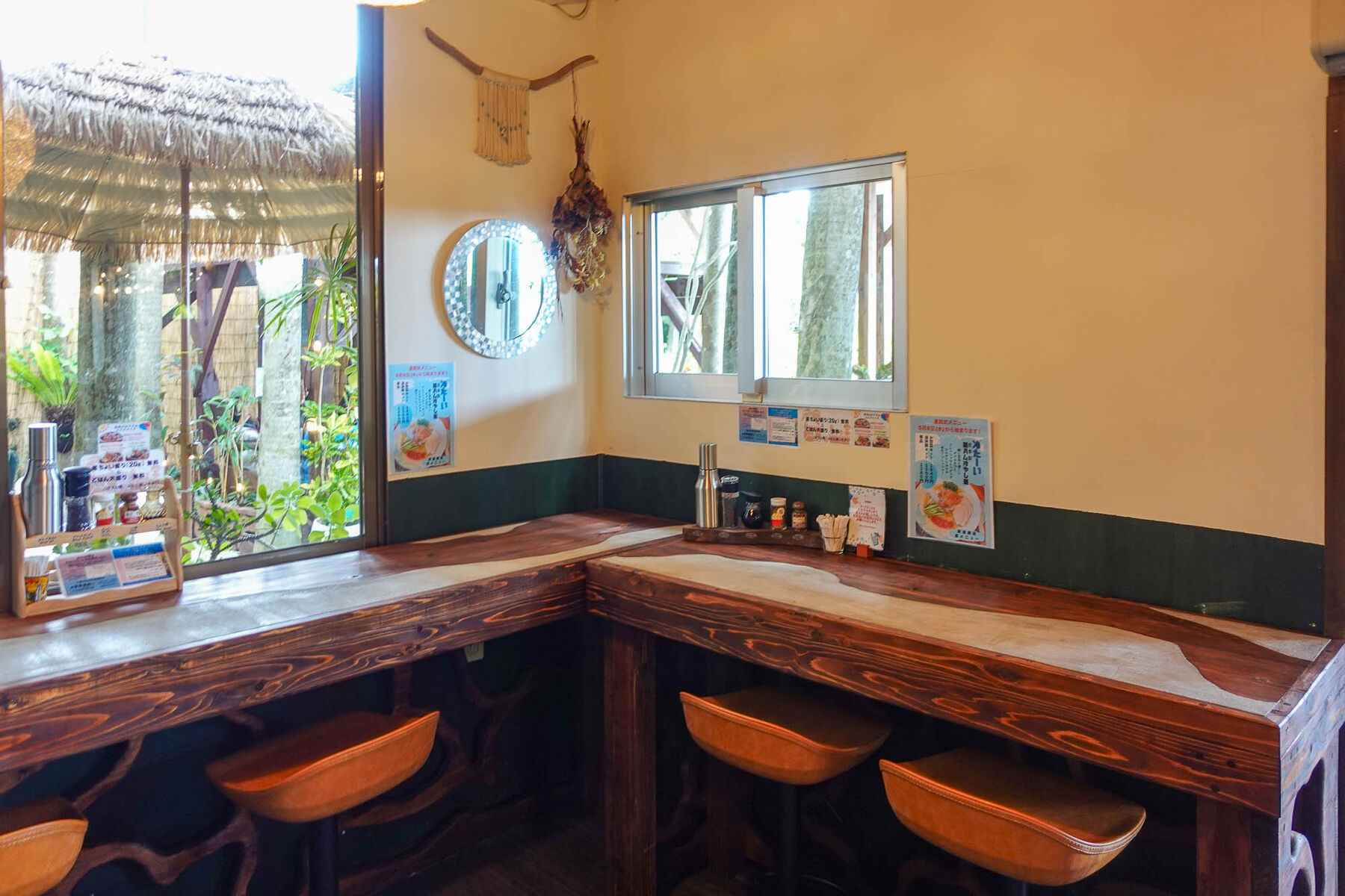 テラス席にはテーブルがあり、店内にはカウンターのお席があります。